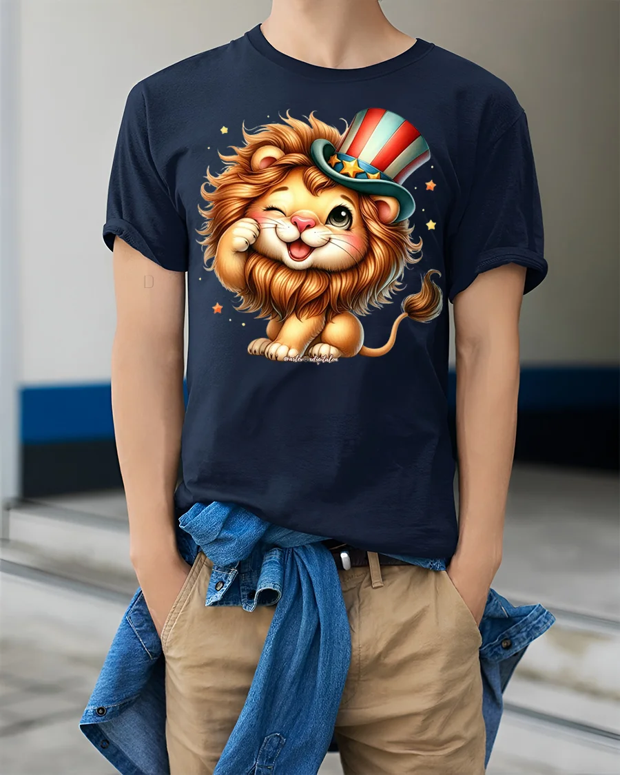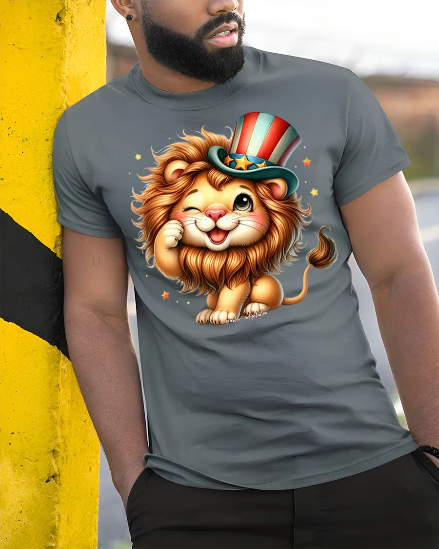 The Cute Patriotic Lion With Uncle Sam Hat Funny Cartoon Graphic Tee stands out with its bright colors expressive character and joyful personality.