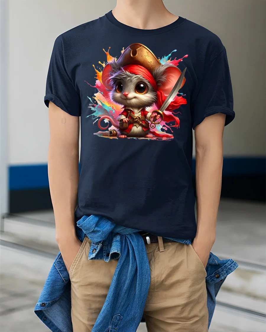 Set sail on a fun-filled adventure with the Cute Pirate Mouse Adventure Graphic T-Shirt. Featuring a charming mouse dressed as a fearless pirate captain, this tee combines humor, cuteness, and colorful fantasy art all in one design. With a vibrant splash of colors and playful details like a sword and pirate hat, it’s the perfect shirt for anyone who loves quirky fashion and unique animal graphics.