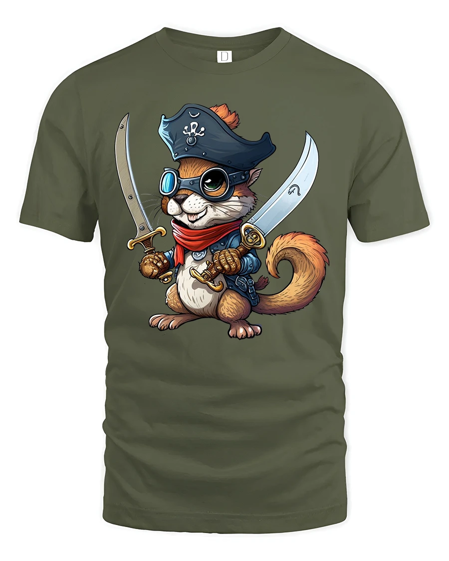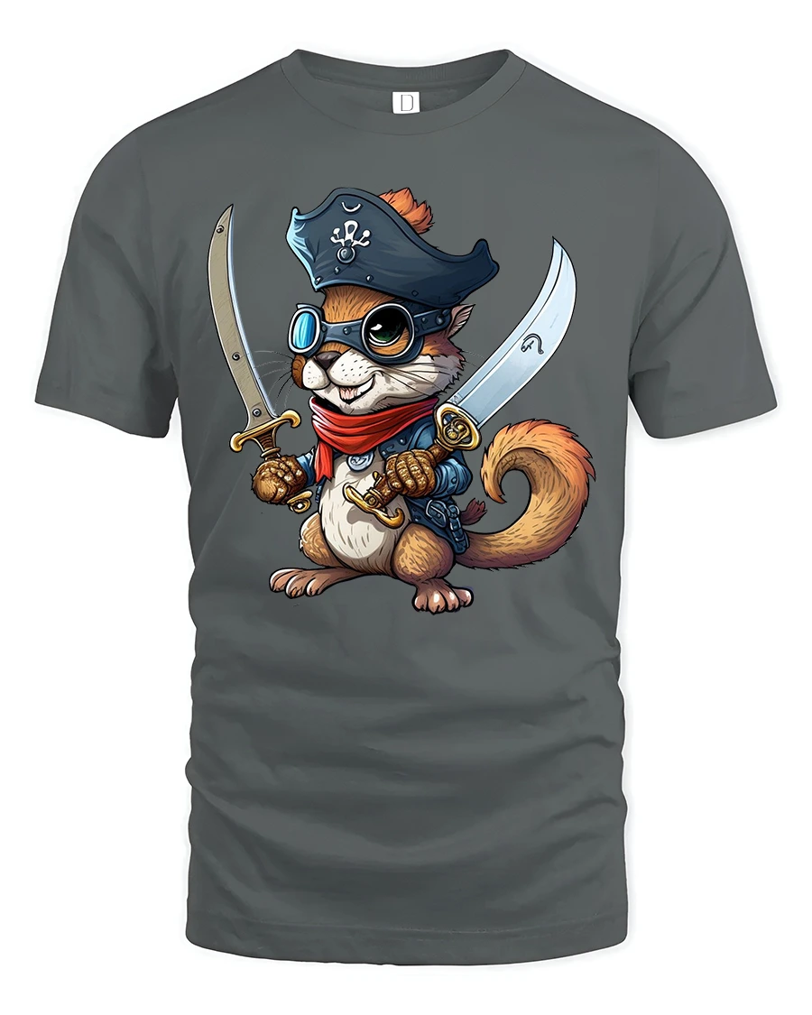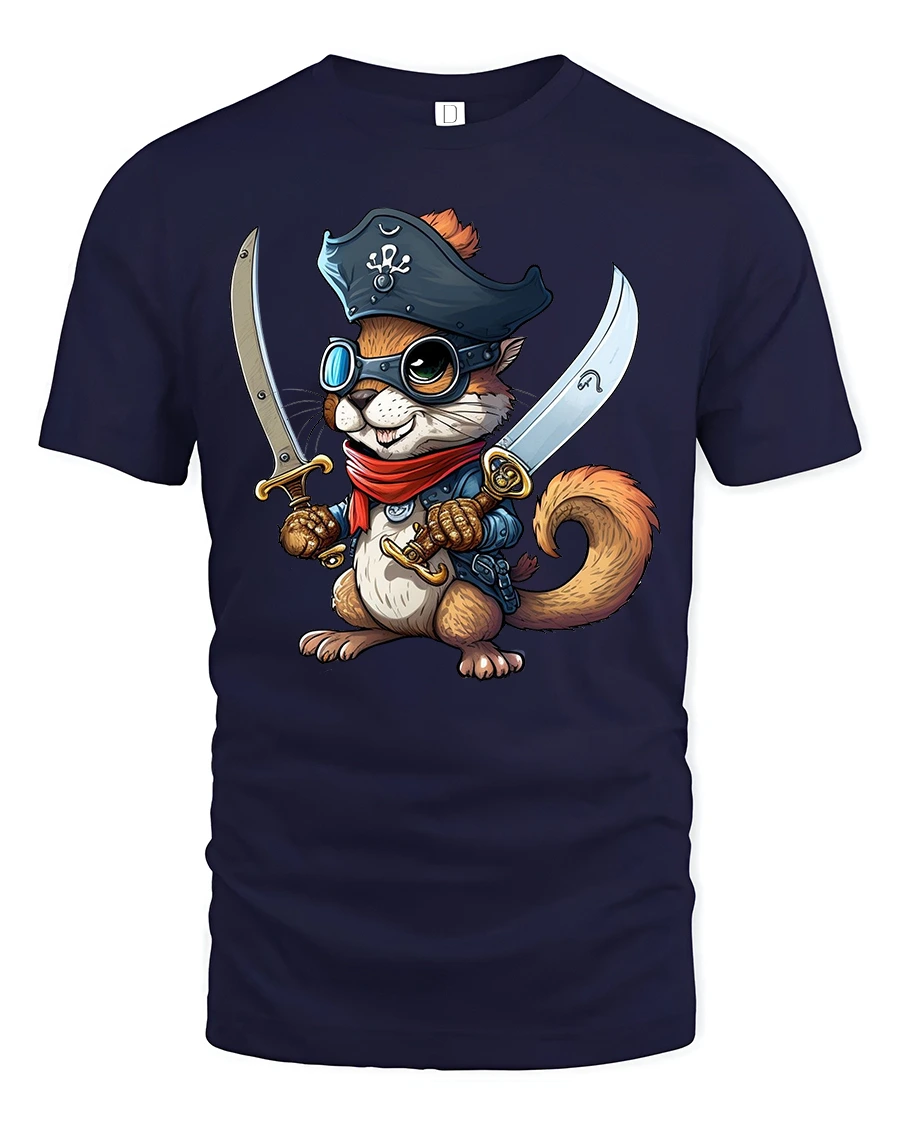 Featuring a fearless little squirrel dressed as a pirate with twin swords, this tee captures a playful spirit and adventurous vibe that’s impossible to ignore.