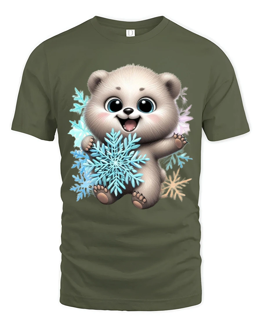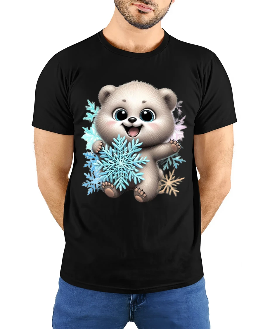 The Cute Polar Bear Snowflake Cartoon Art T Shirt brings joyful winter charm and adorable character into one heartwarming design.