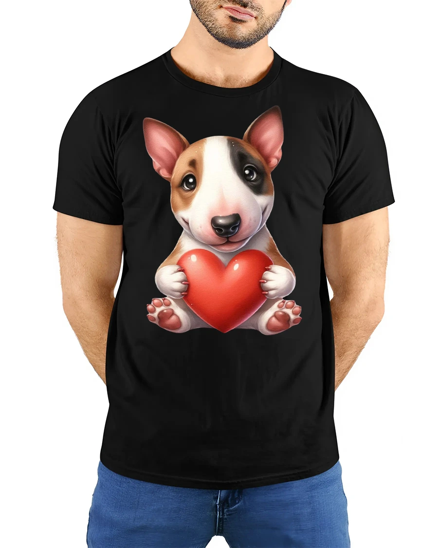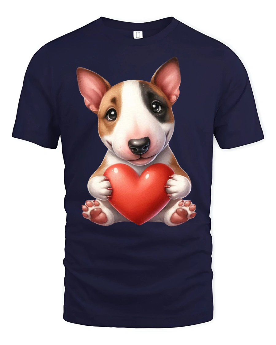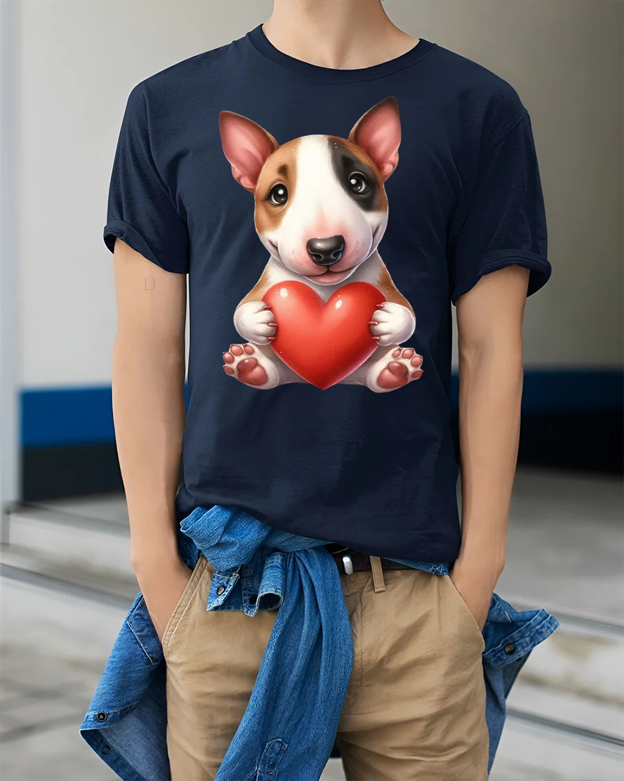 Cute Puppy Love Graphic Tee captures pure warmth with an adorable puppy holding a bright heart close.