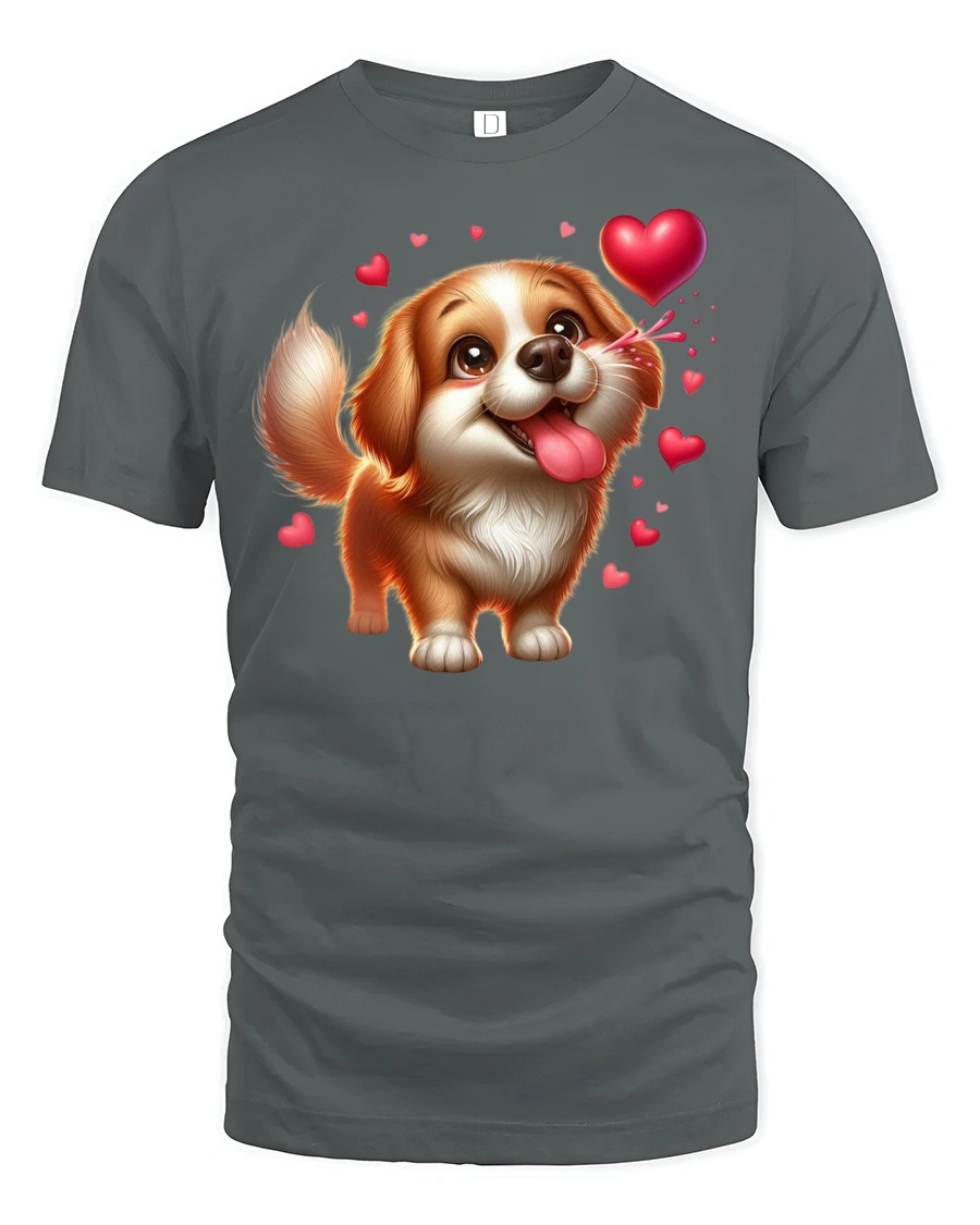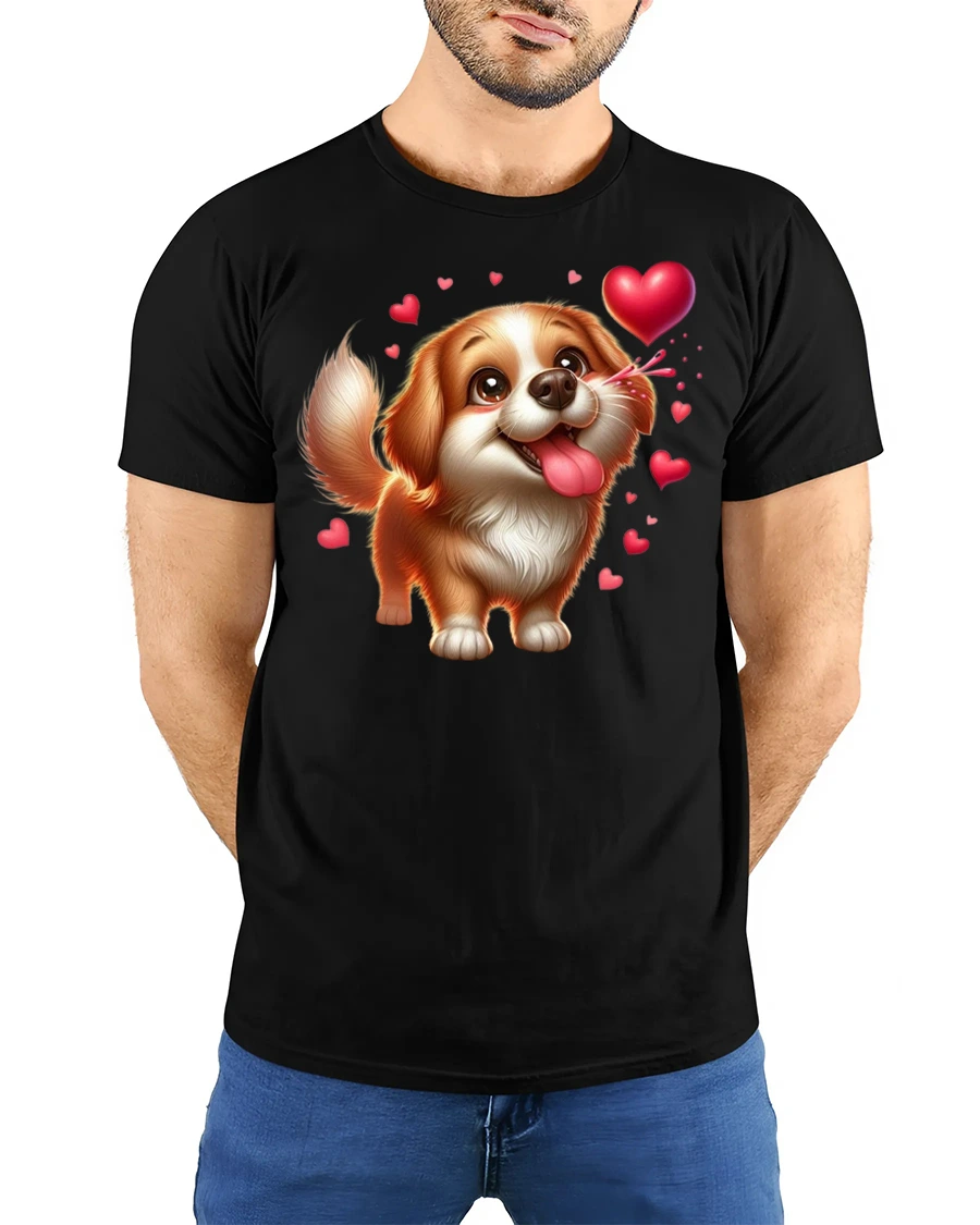 Cute Puppy Love Hearts Funny Dog Lover Printed Tee is the perfect shirt for anyone who can’t resist the charm of an adorable puppy. Featuring a happy cartoon dog surrounded by floating hearts, this tee captures the warmth and affection that dogs bring to our lives. The playful design makes it a fun and eye-catching addition to any casual outfit.