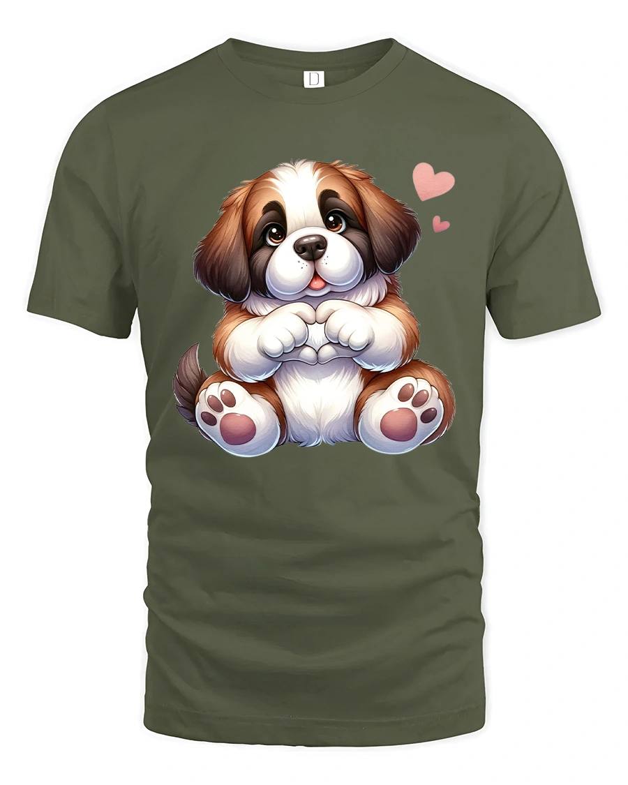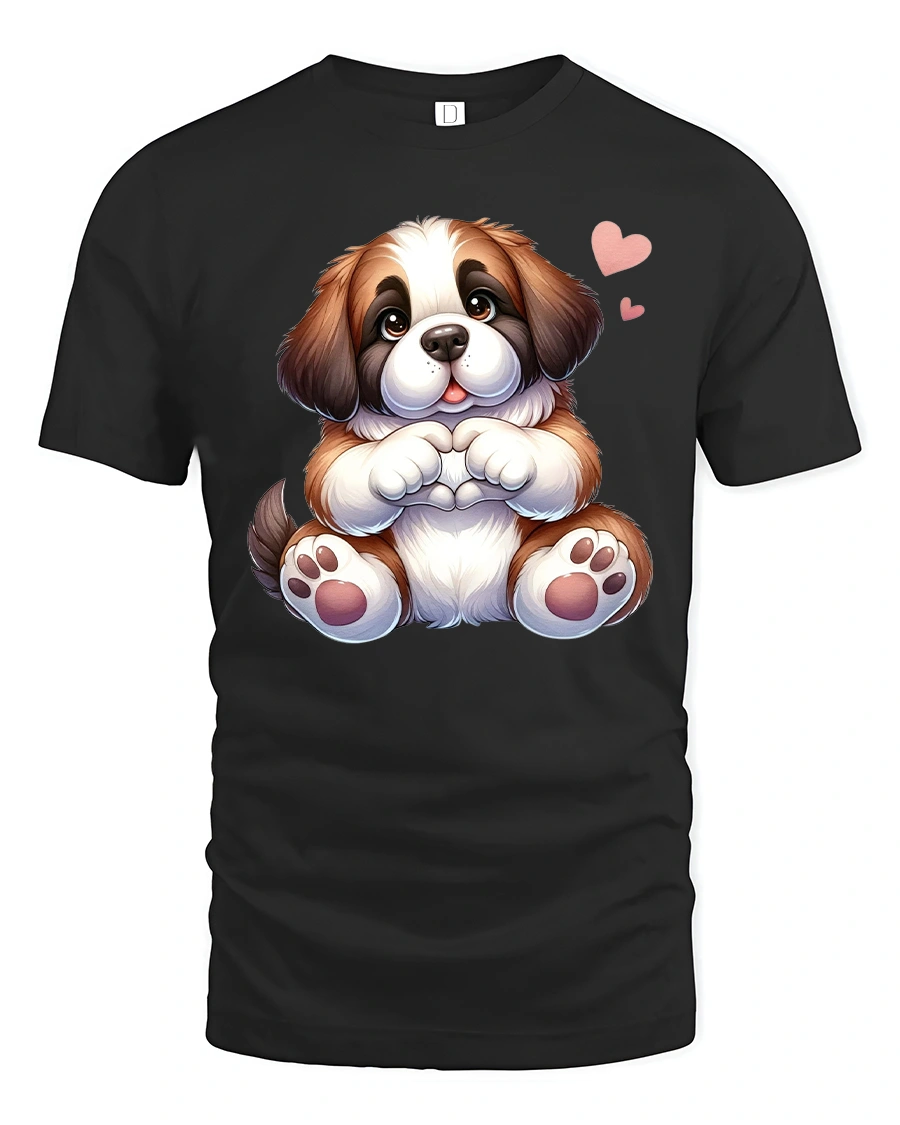 The Cute Puppy Making Heart Shape Cartoon Graphic T Shirt with Love delivers warmth and happiness through a charming and lovable design.