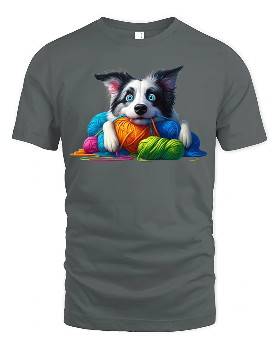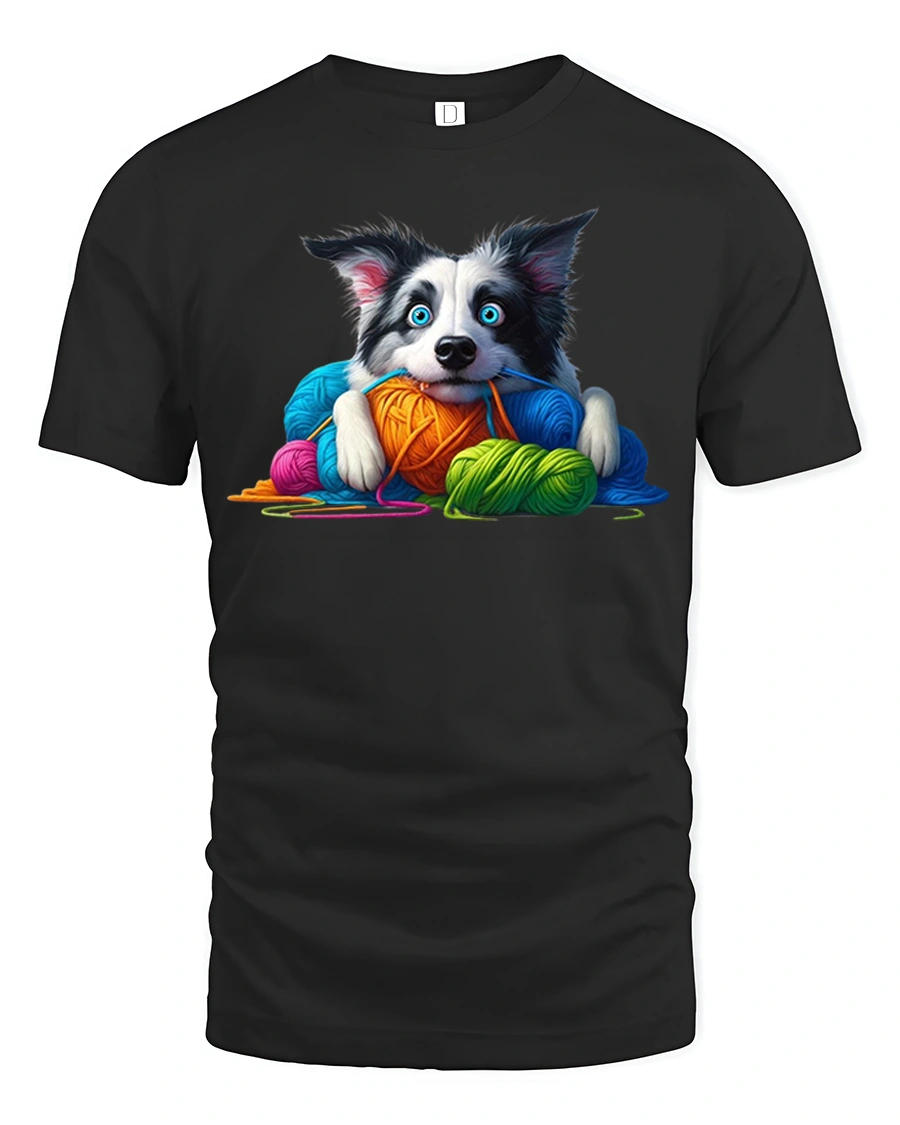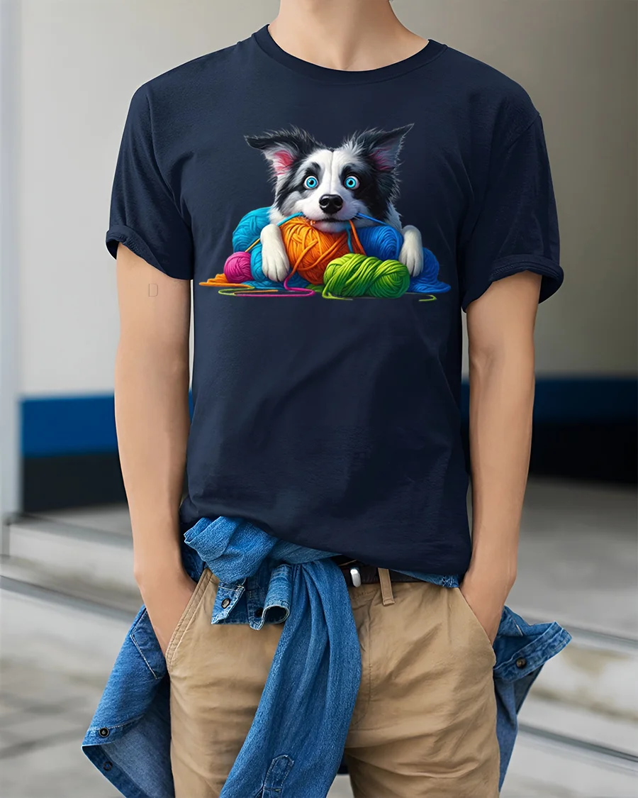 Cute Puppy With Colorful Yarn Graphic Tee Cozy Fun Art Style is perfect for dog lovers creative spirits and anyone who loves cute expressive designs.