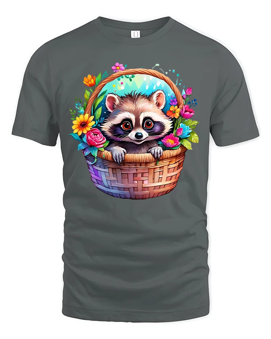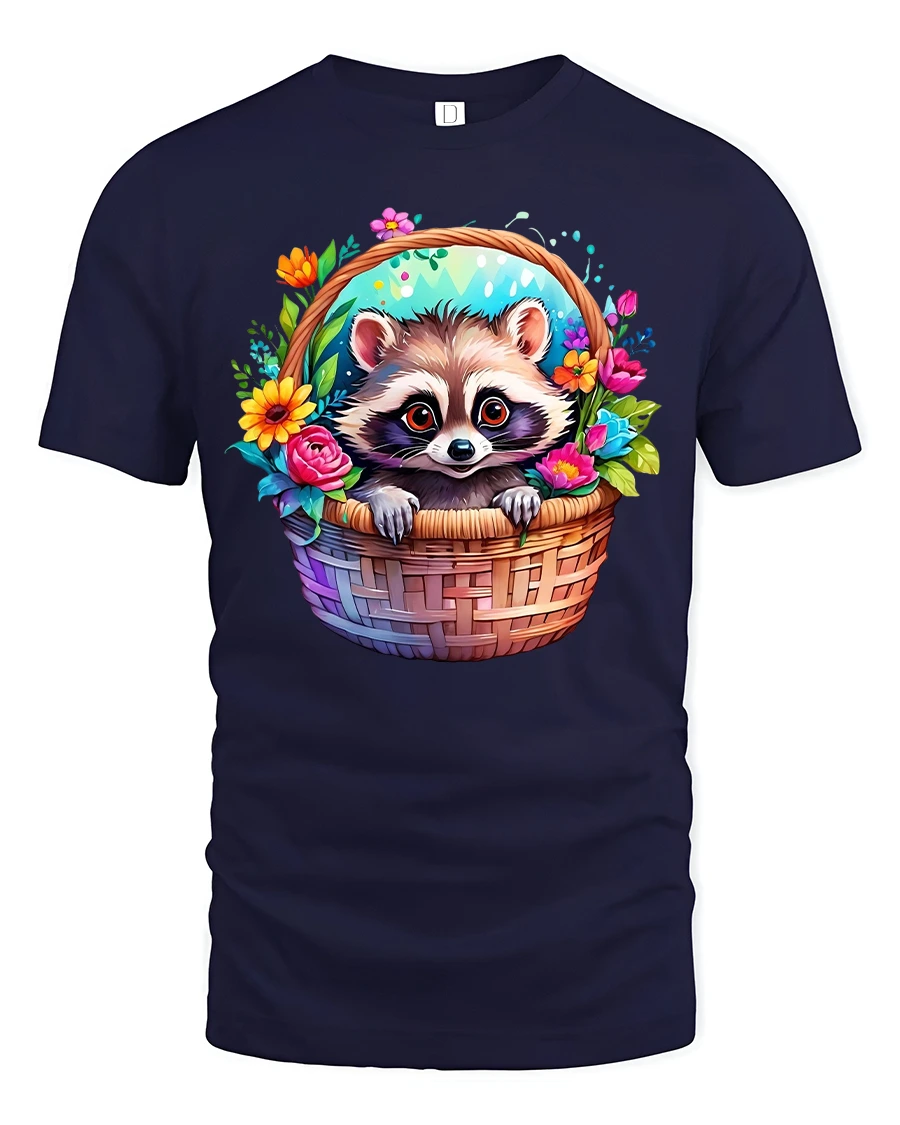 Cute Raccoon Basket Tee Colorful Funny Animal T-shirt is the perfect blend of charm, humor, and style. Featuring a sweet raccoon peeking out of a basket surrounded by vibrant flowers, this tee instantly brightens your outfit and mood. Its playful design makes it a must-have for animal lovers and fans of quirky, eye-catching apparel.