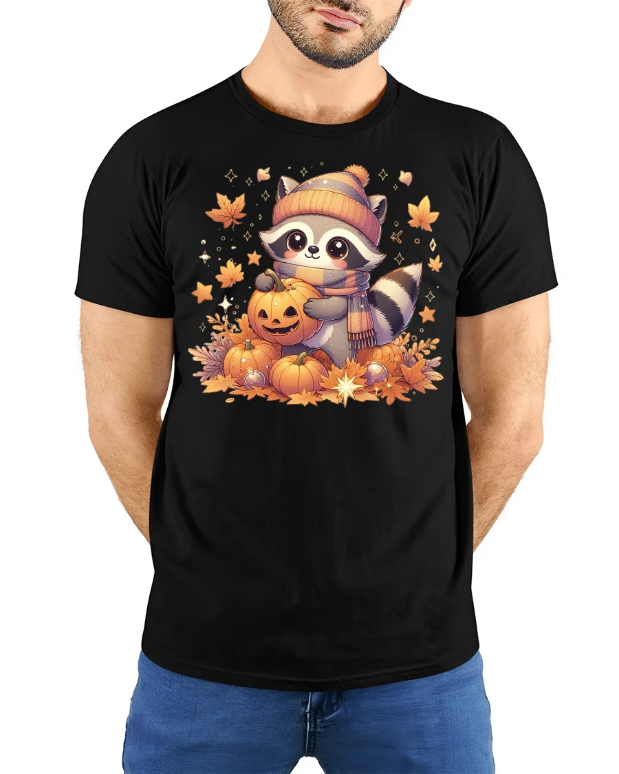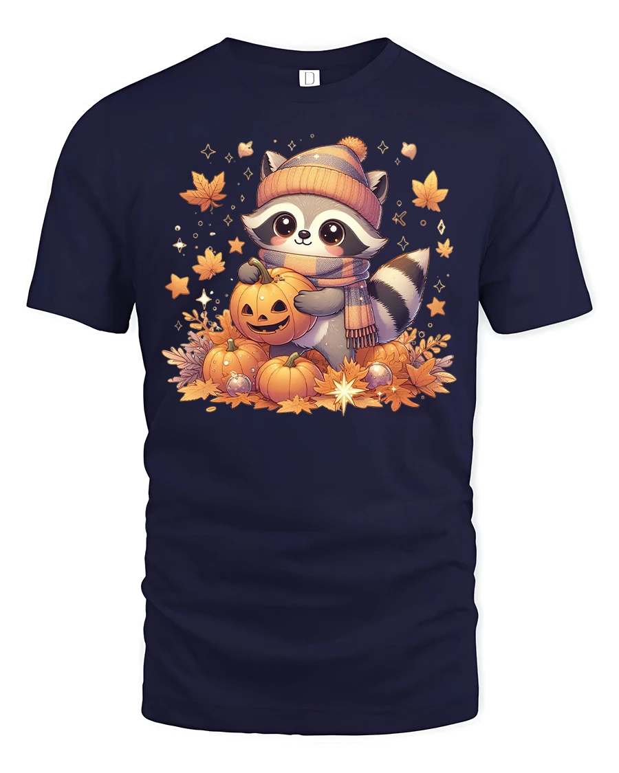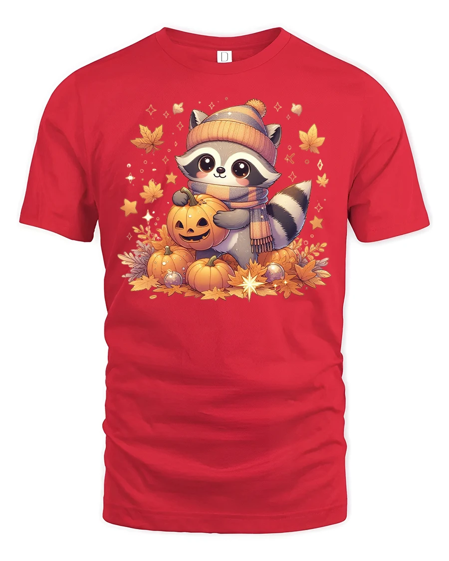 Cute Raccoon Pumpkin Halloween Fall Graphic T-shirt is the perfect choice for anyone who loves cozy autumn vibes and adorable woodland animals. This tee features a charming raccoon in a beanie and scarf holding a pumpkin, surrounded by glowing fall leaves and jack-o’-lanterns, making it an ideal shirt for the season. With its warm autumn colors, it’s a fun and festive way to celebrate both fall and Halloween.