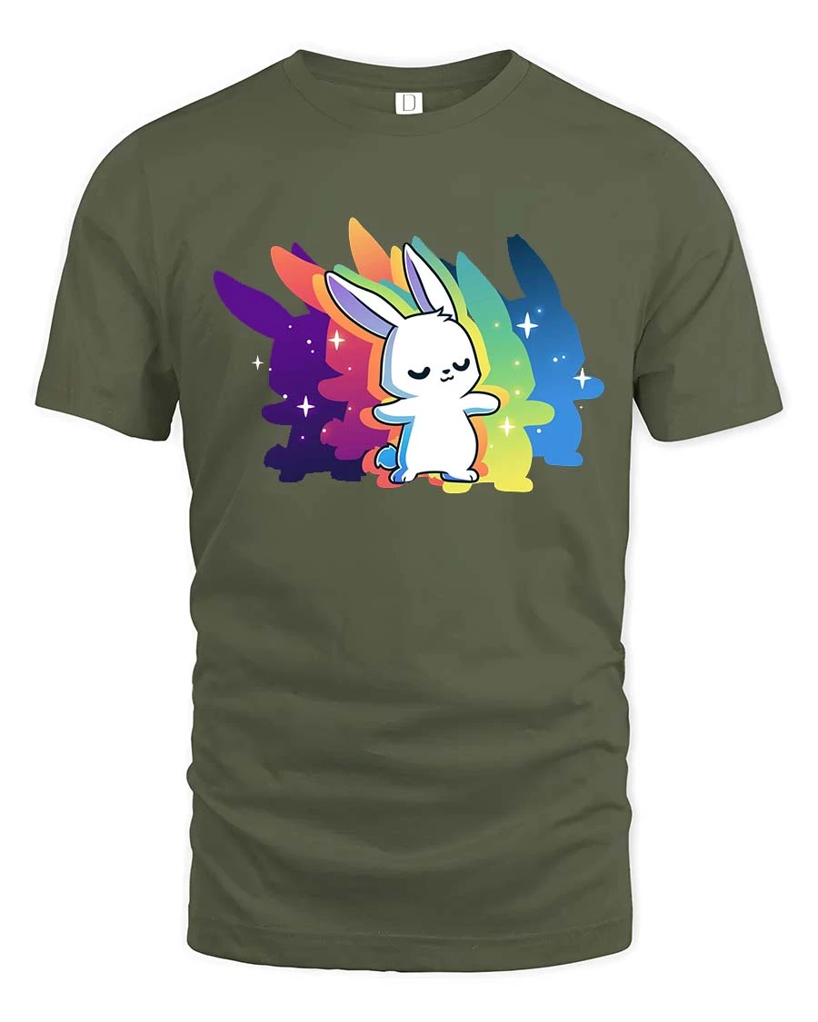 Express your love for cute and vibrant fashion with this delightful rainbow bunny tee.