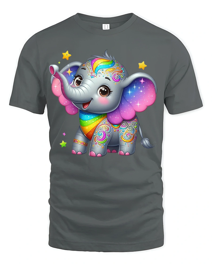 Tags: adorable elephant t shirt, animal art tshirt, colorful elephant shirt, cute animal t shirt, cute cartoon elephant shirt, cute character t shirt, cute elephant t shirt, elephant cartoon tee, elephant illustration tee, fantasy animal tshirt, joyful elephant shirt, magical animal tshirt, playful animal tee, rainbow elephant tshirt, whimsical elephant tee