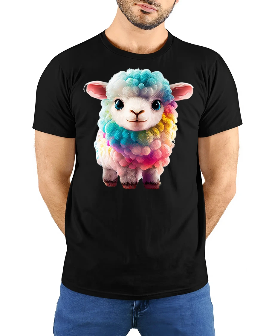 Cute Rainbow Lamb Graphic T Shirt is perfect for anyone who loves cute animals and colorful artwork.