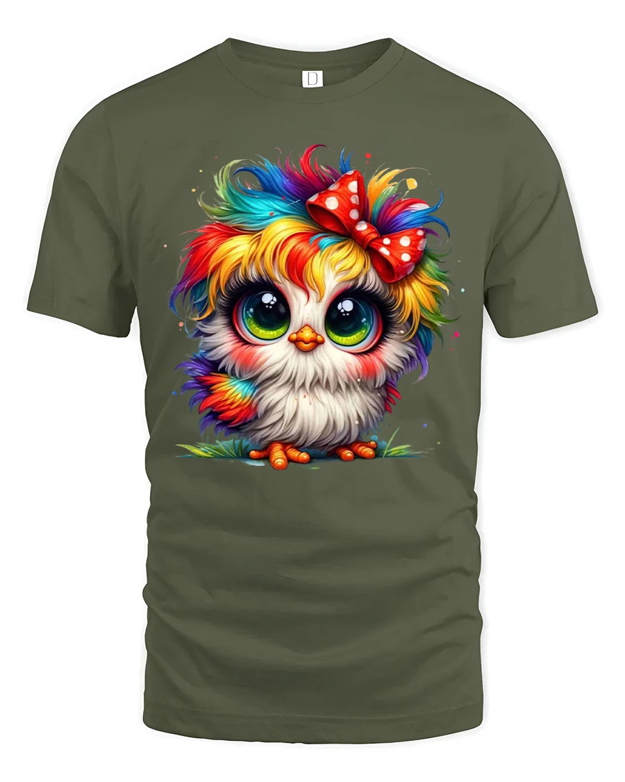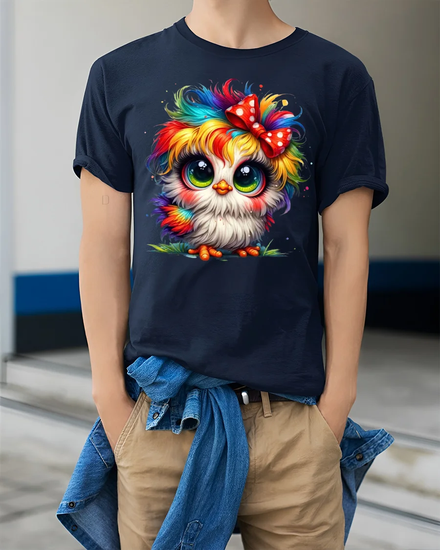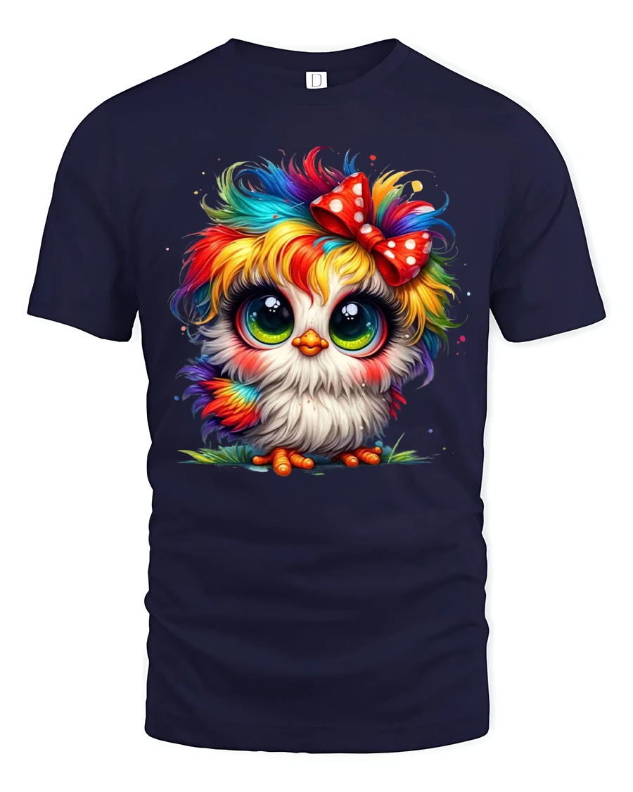 This Cute Rainbow Owl Big Eyes Bow Colorful Art Graphic T-Shirt brings irresistible charm and vibrant personality to your style. The design features an adorable fluffy owl with huge sparkling eyes, rainbow-colored feathers and a playful red bow, creating a look that is both whimsical and heartwarming. Its bright color palette gives the artwork a lively magical feel that instantly catches attention and brings smiles.