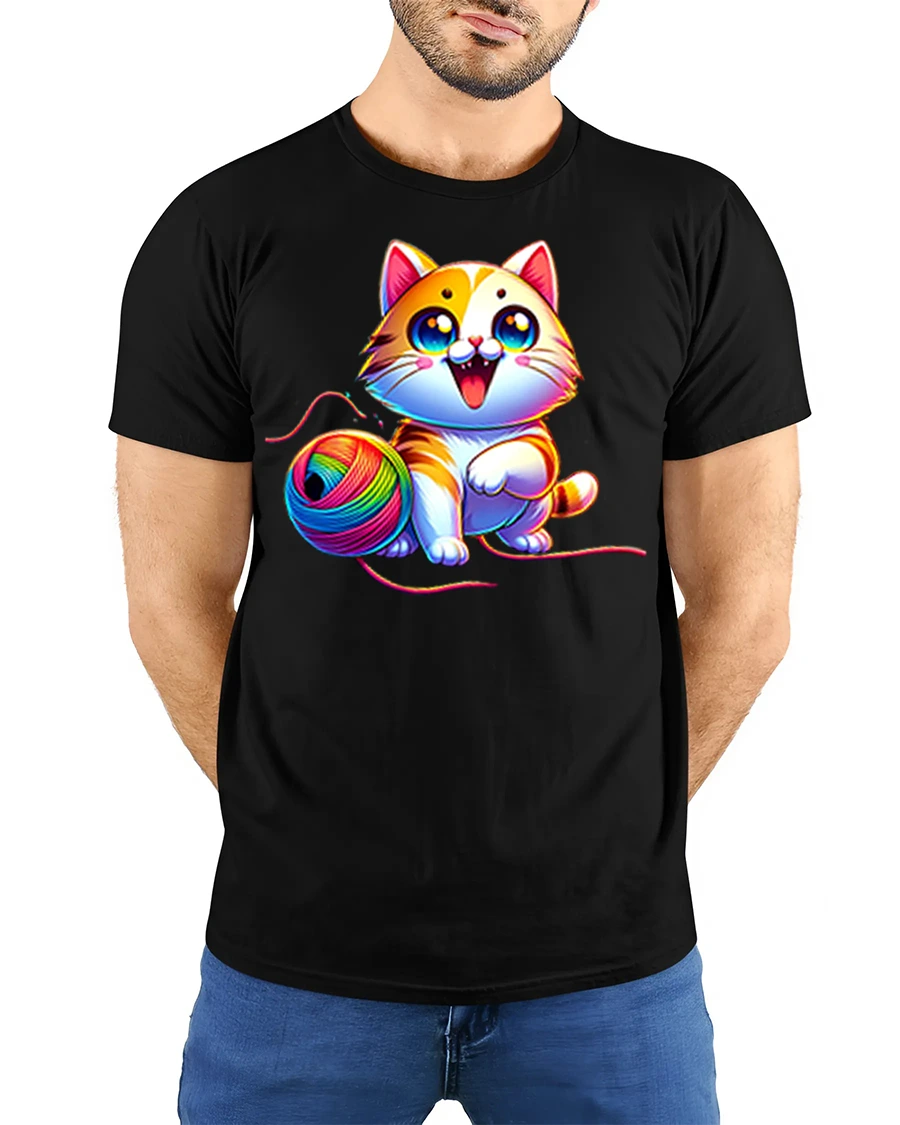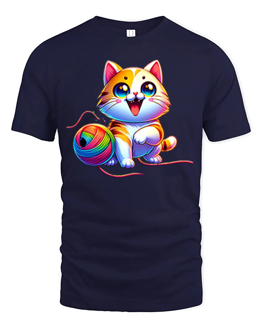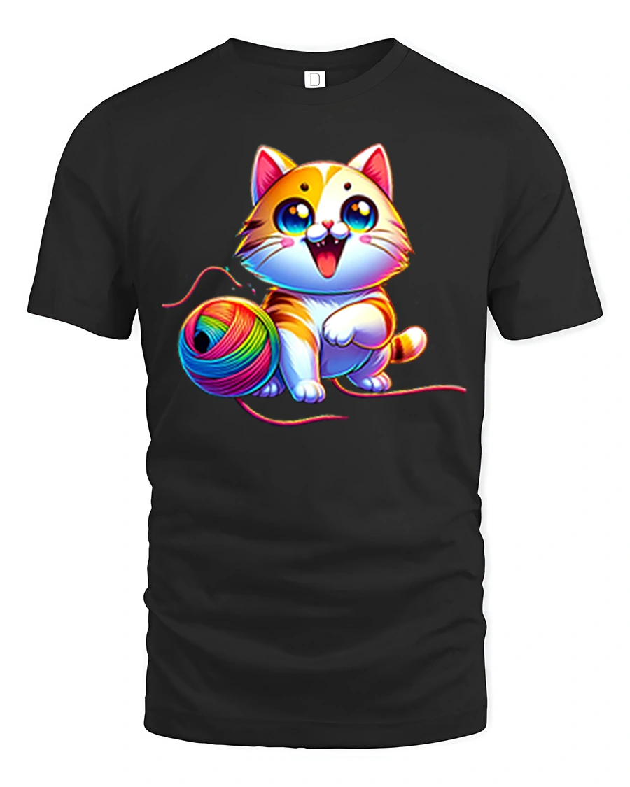 The Cute Rainbow Yarn Cat Graphic Tee Adorable Playful T Shirt is a delightful addition to any graphic tee collection.