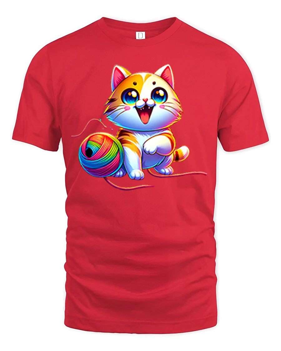 The Cute Rainbow Yarn Cat Graphic Tee Adorable Playful T Shirt brings joy and charm with an irresistibly sweet cartoon design.