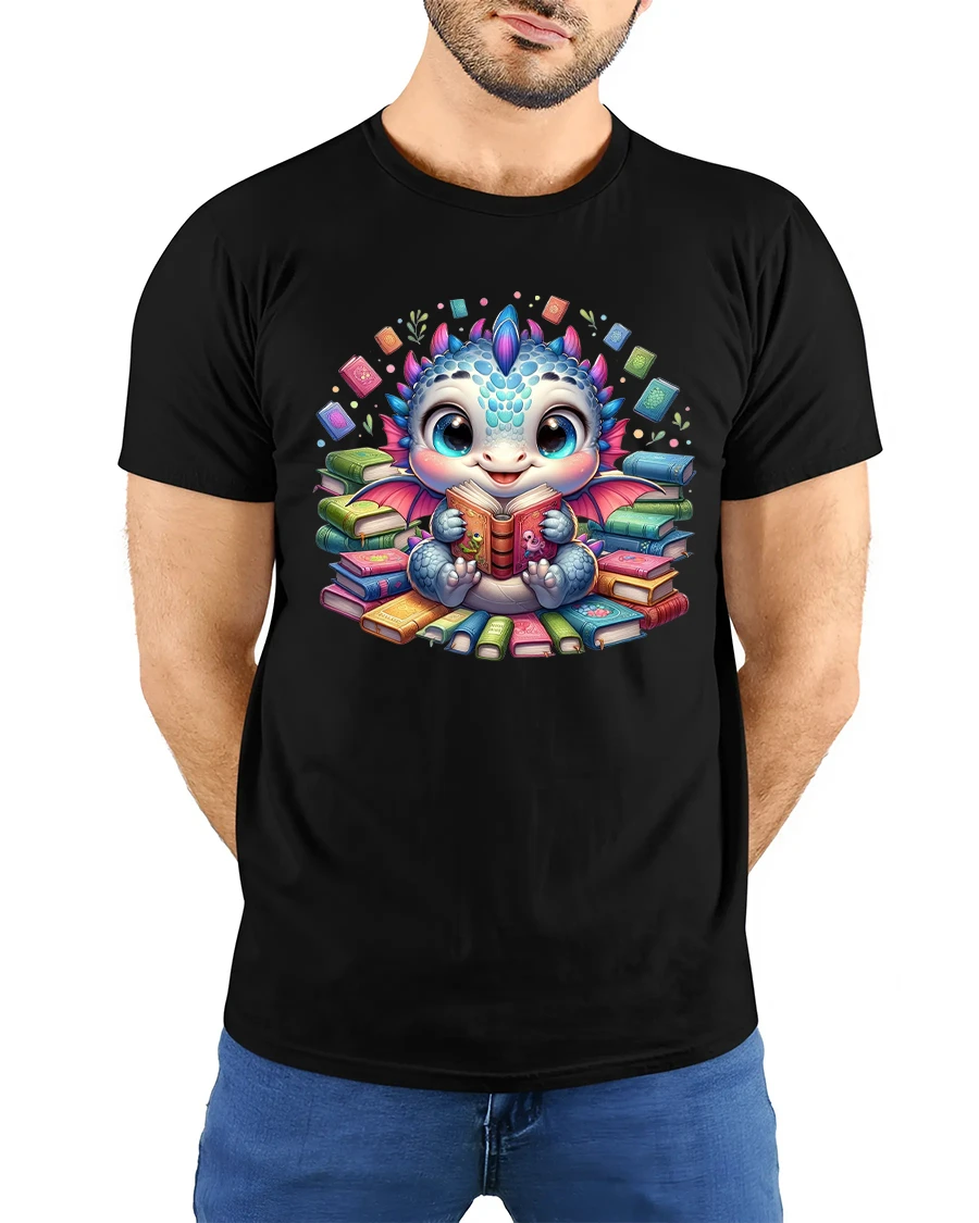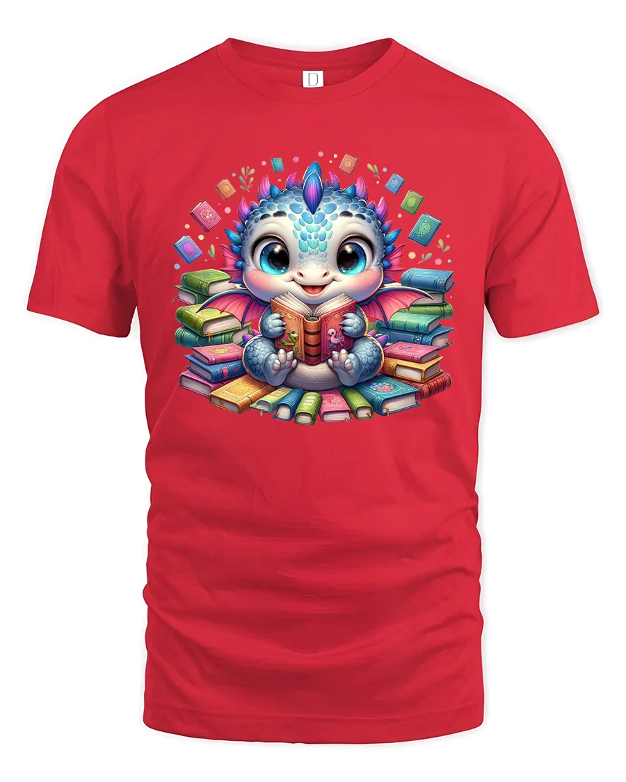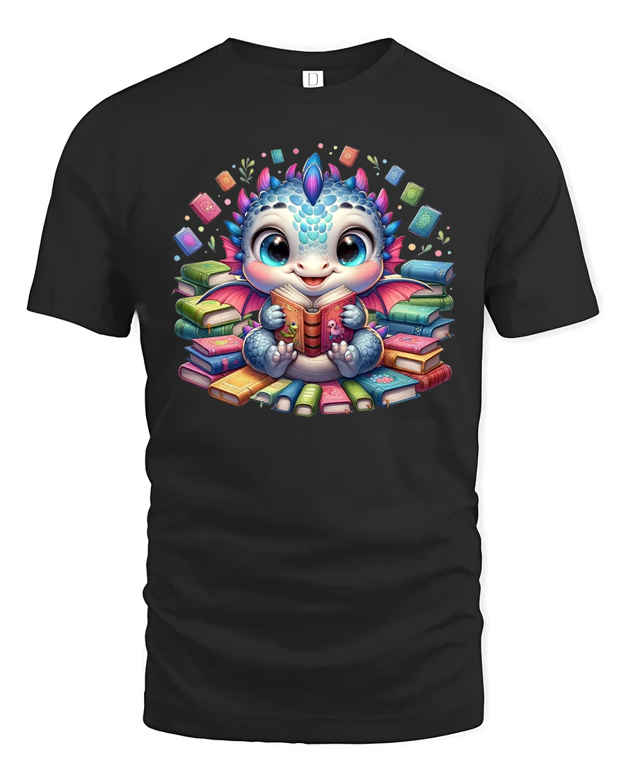 Cute Reading Dragon Graphic Tee Adorable Fantasy Book Lover T Shirt features a heartwarming design that celebrates imagination curiosity and the joy of reading.