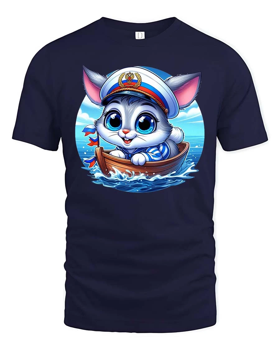 Cute Sailor Cat T-Shirt Funny Ocean Animal Graphic Tee is a delightful design that brings a charming nautical theme to your everyday style. Featuring an adorable cartoon cat dressed as a sailor sitting in a small boat on the ocean, this t-shirt creates a playful and cheerful vibe. The bright colors and detailed illustration make it a standout piece for cat lovers and fans of cute animal designs.