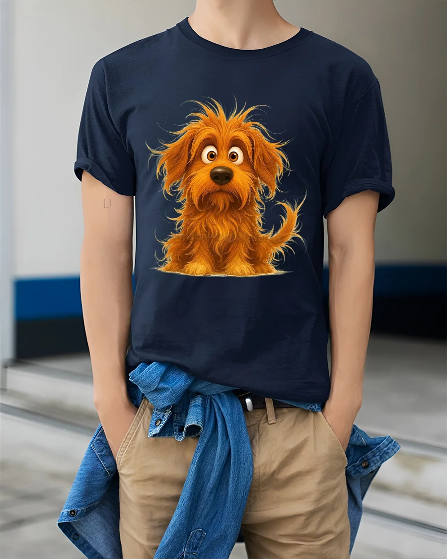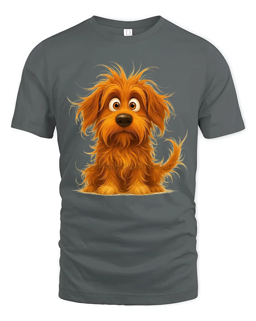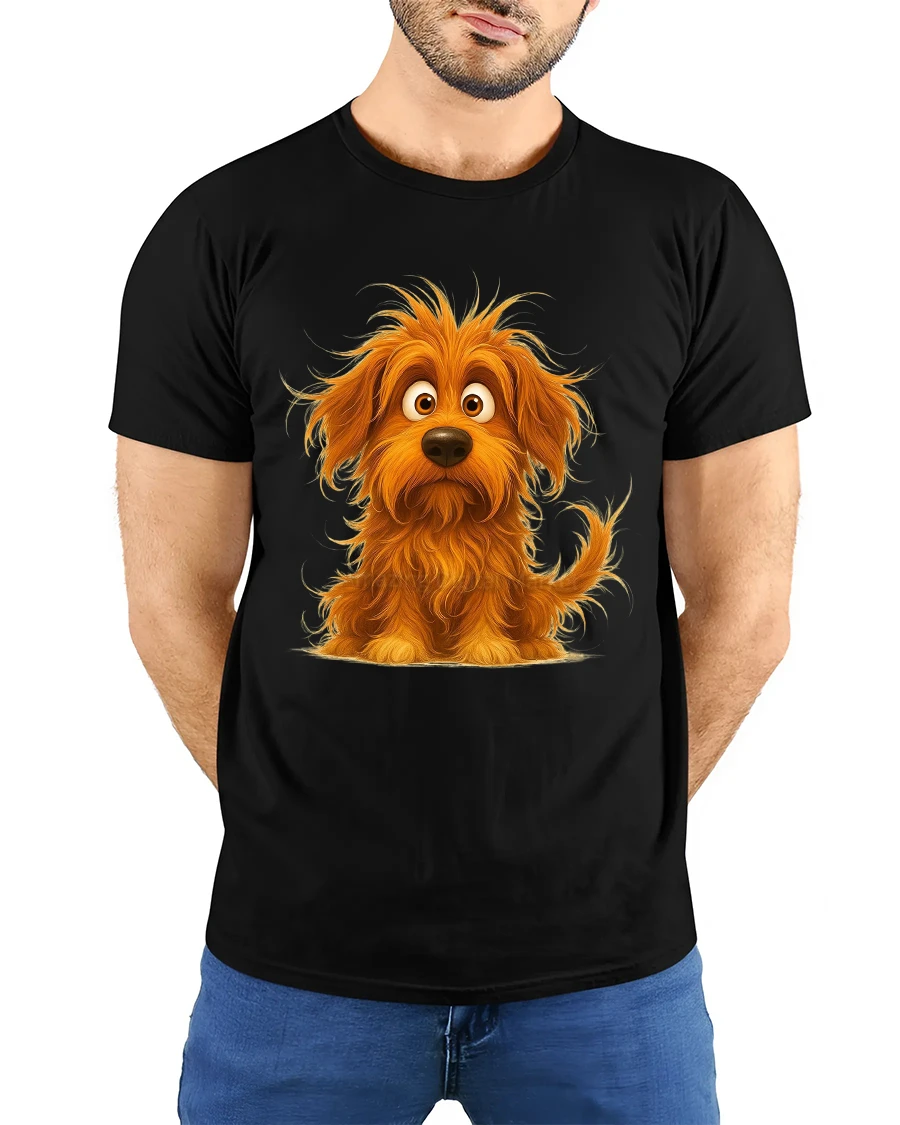 Show your love for furry friends with the Cute Shaggy Puppy Cartoon Graphic T Shirt. This charming design features an adorable fluffy pup with big expressive eyes and a playful personality that instantly melts hearts. The detailed illustration and warm tones make this puppy t shirt a delightful statement piece that brings joy and lighthearted style to any outfit.