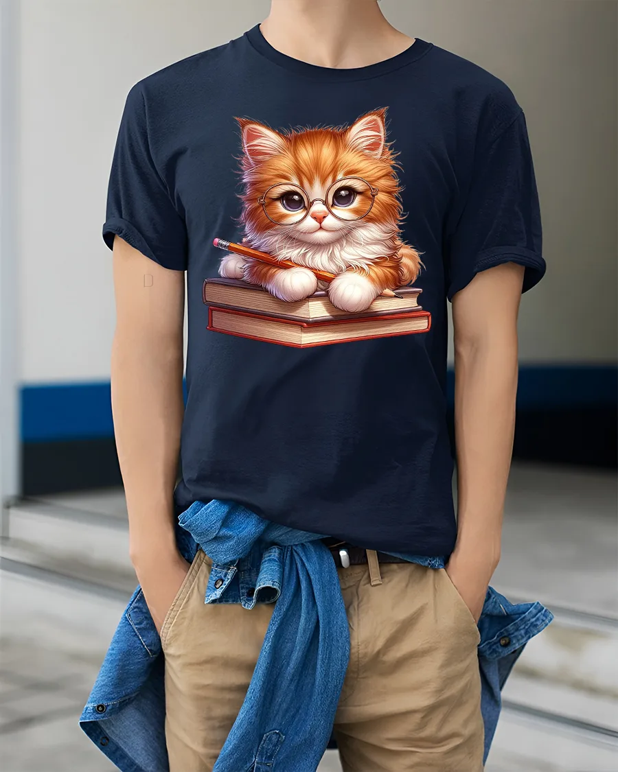 Cute Smart Cat Reading Books Graphic Tee Tshirt Art Design brings charm and personality to everyday style.