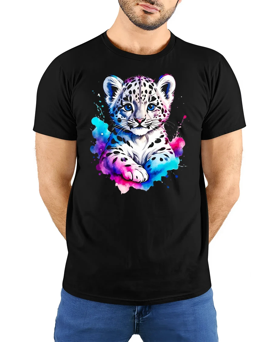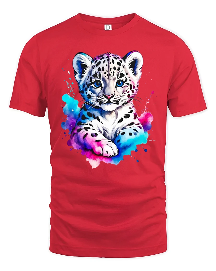 Cute Snow Leopard Cub Art Tee with Color Splash Design brings a stunning mix of wildlife charm and artistic style to your everyday wardrobe. Featuring a beautifully illustrated snow leopard cub surrounded by vivid watercolor splashes, this t-shirt is perfect for anyone who loves expressive art, adorable animals, or stylish graphic tees.