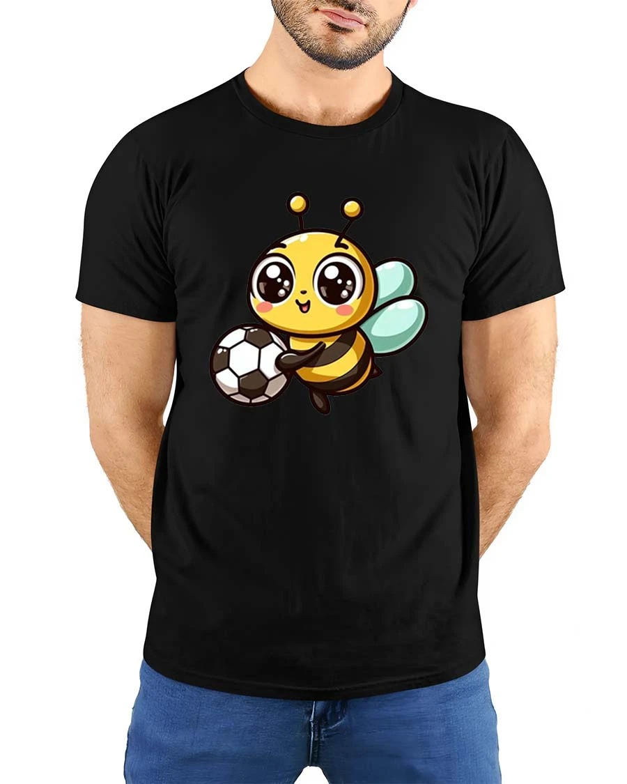 Featuring a cheerful bee holding a soccer ball, this playful design brings energy and charm to your everyday outfit.