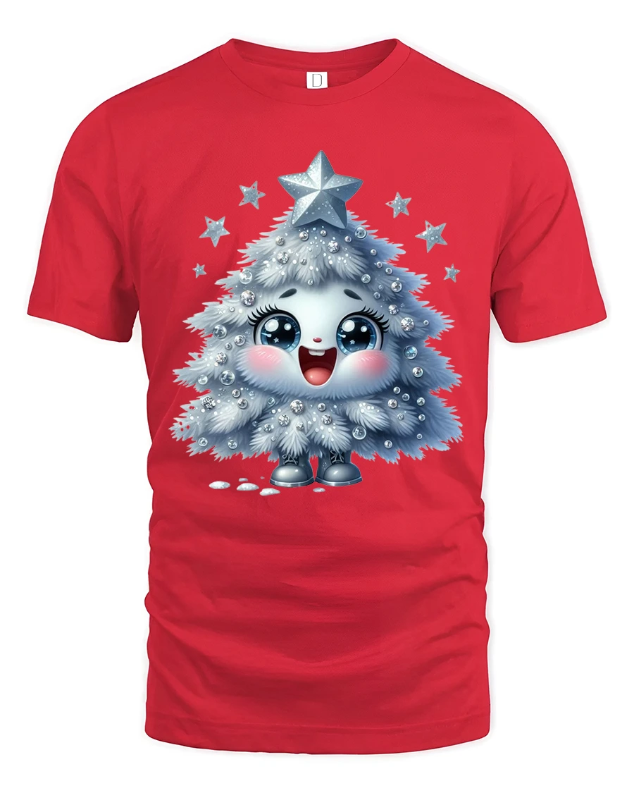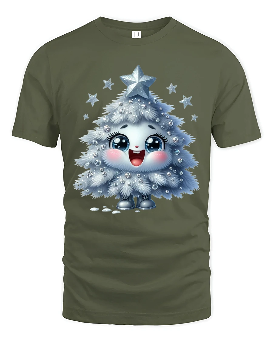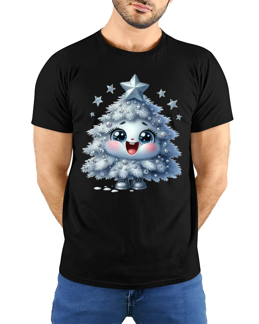 The Cute Sparkle Christmas Tree Character Graphic T Shirt brings joyful holiday charm to your seasonal wardrobe. Featuring an adorable smiling Christmas tree with big sparkling eyes and a shining star on top this design captures the fun and warmth of the holiday season. Glitter inspired details and soft frosty tones create a magical winter feel that instantly spreads cheer wherever you go.