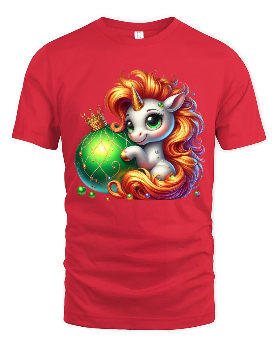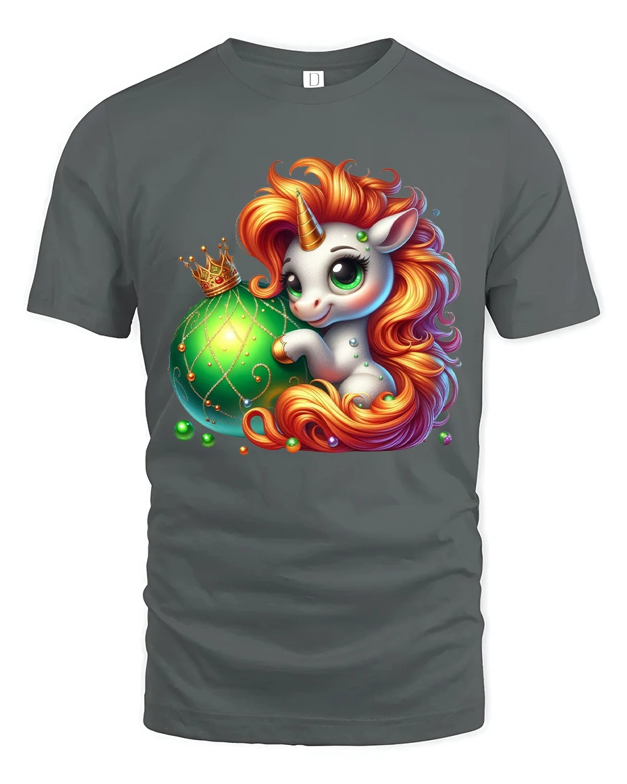 The Cute Unicorn Fantasy Ornament Magic Cartoon Art Graphic Tee showcases an adorable unicorn with flowing fiery hair and a sparkling royal ornament.