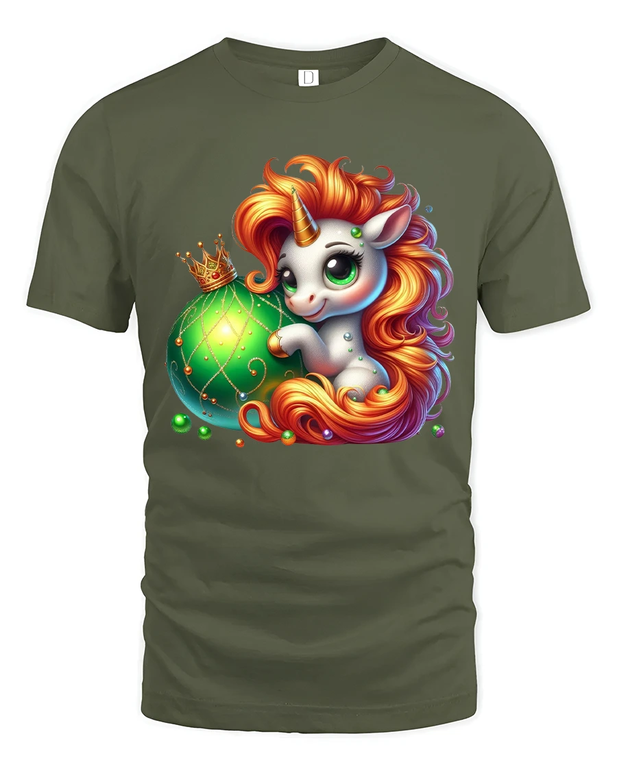 Cute Unicorn Fantasy Ornament Magic Cartoon Art Graphic Tee - military green t-shirt on white background