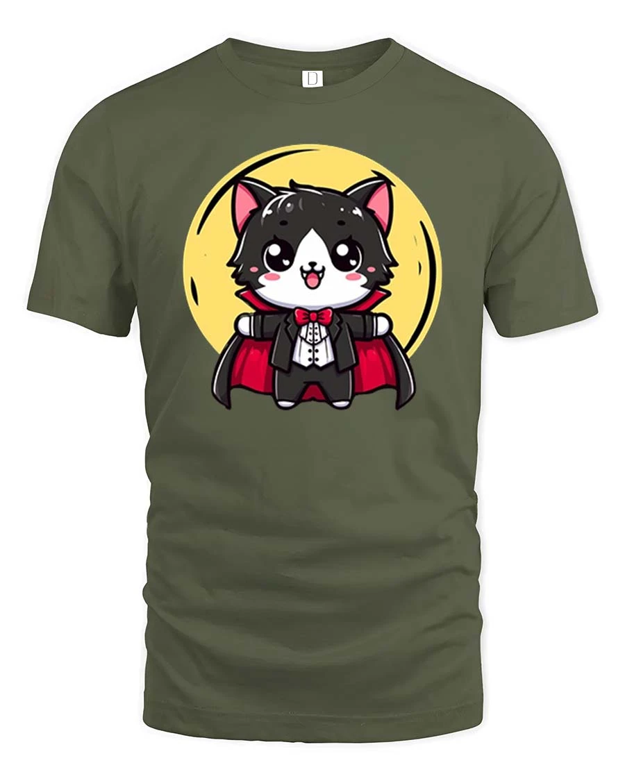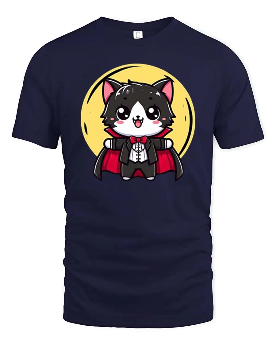 Cute Vampire Cat Cartoon Halloween Graphic T-Shirt Tee features an adorable spooky character that blends playful charm with festive creativity.