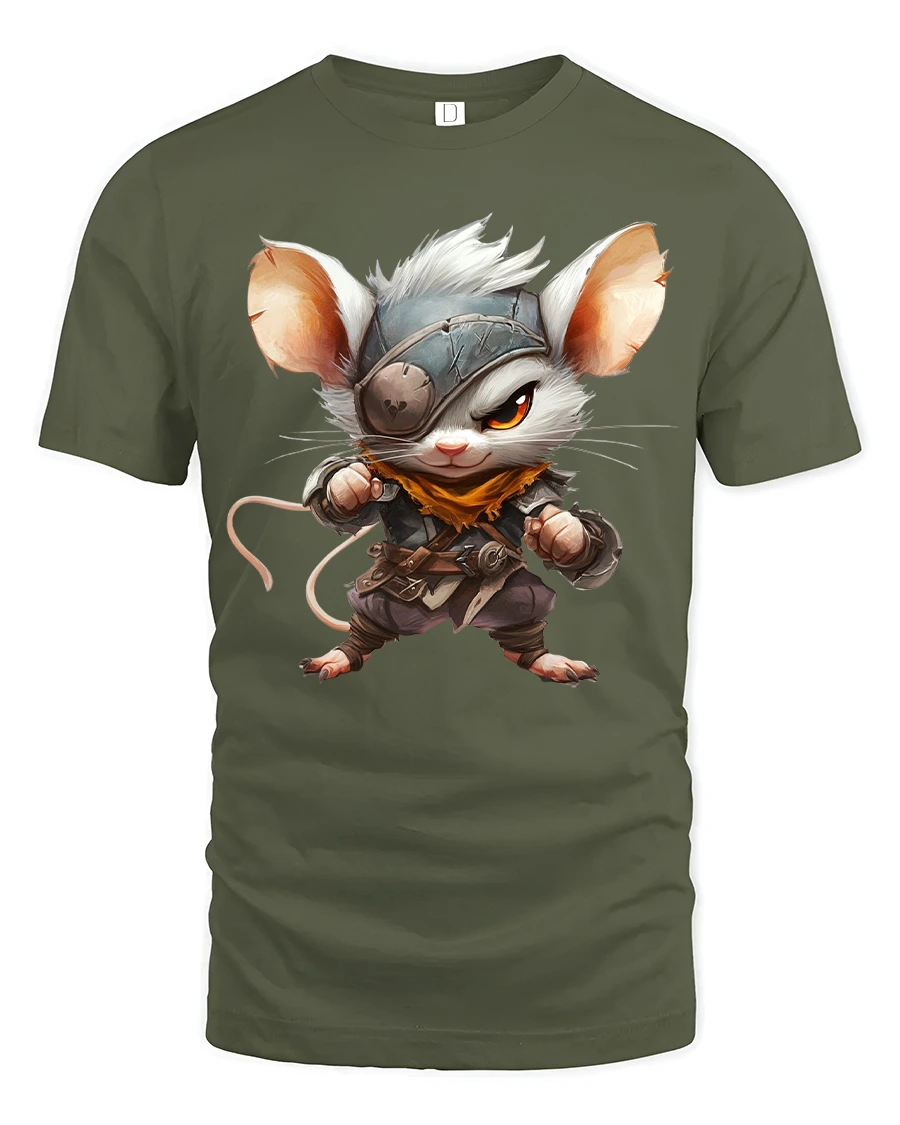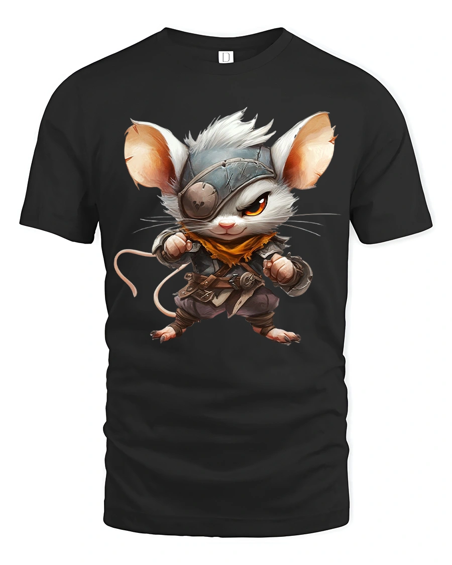 Cute Warrior Mouse Fantasy Character Art Graphic Tee Shirt brings charm courage and creativity into one eye catching design.