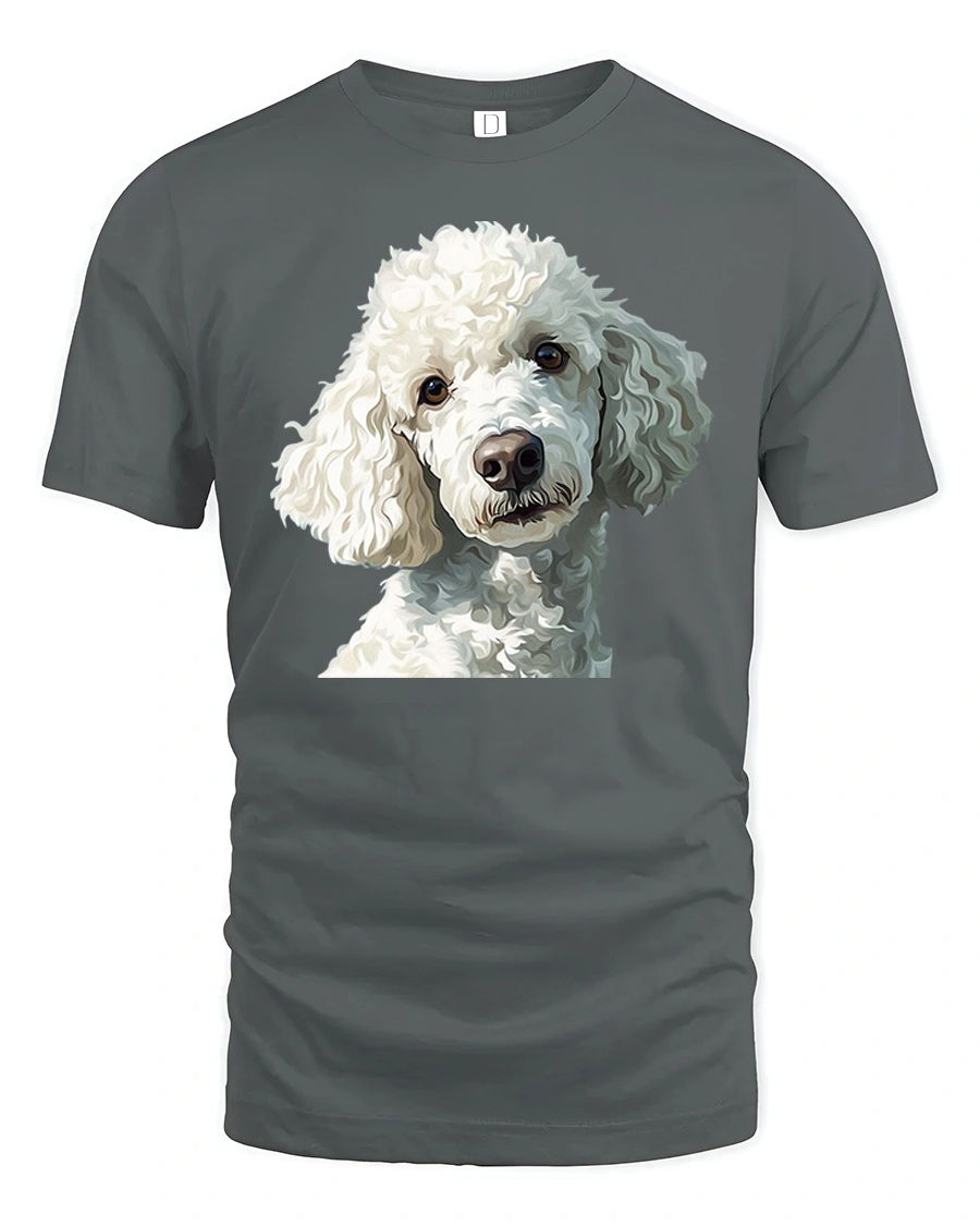 Cute White Poodle Portrait Graphic Tee With Elegant Dog Art showcases a beautifully detailed illustration that captures the gentle personality of a white poodle.