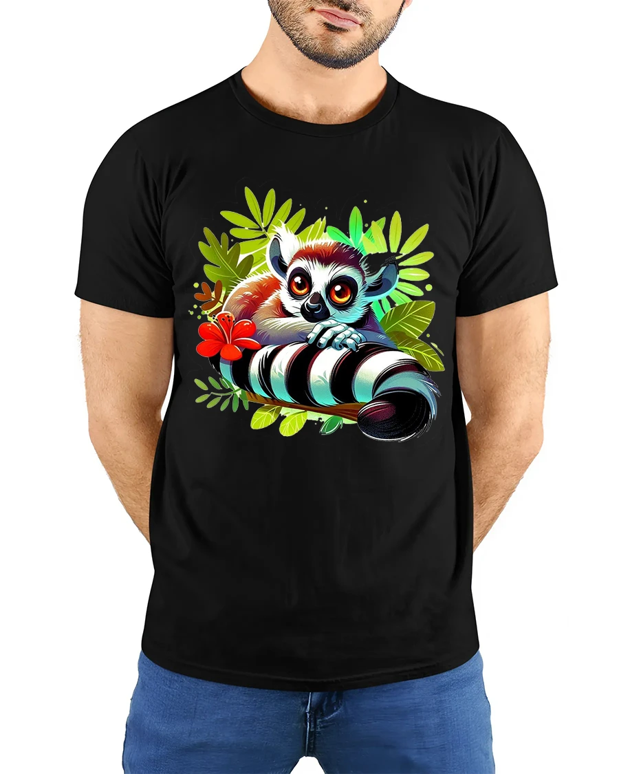 Cute Wide Eyed Lemur Jungle Art Tee Colorful Cartoon Style brings tropical charm and playful energy into one eye catching design.