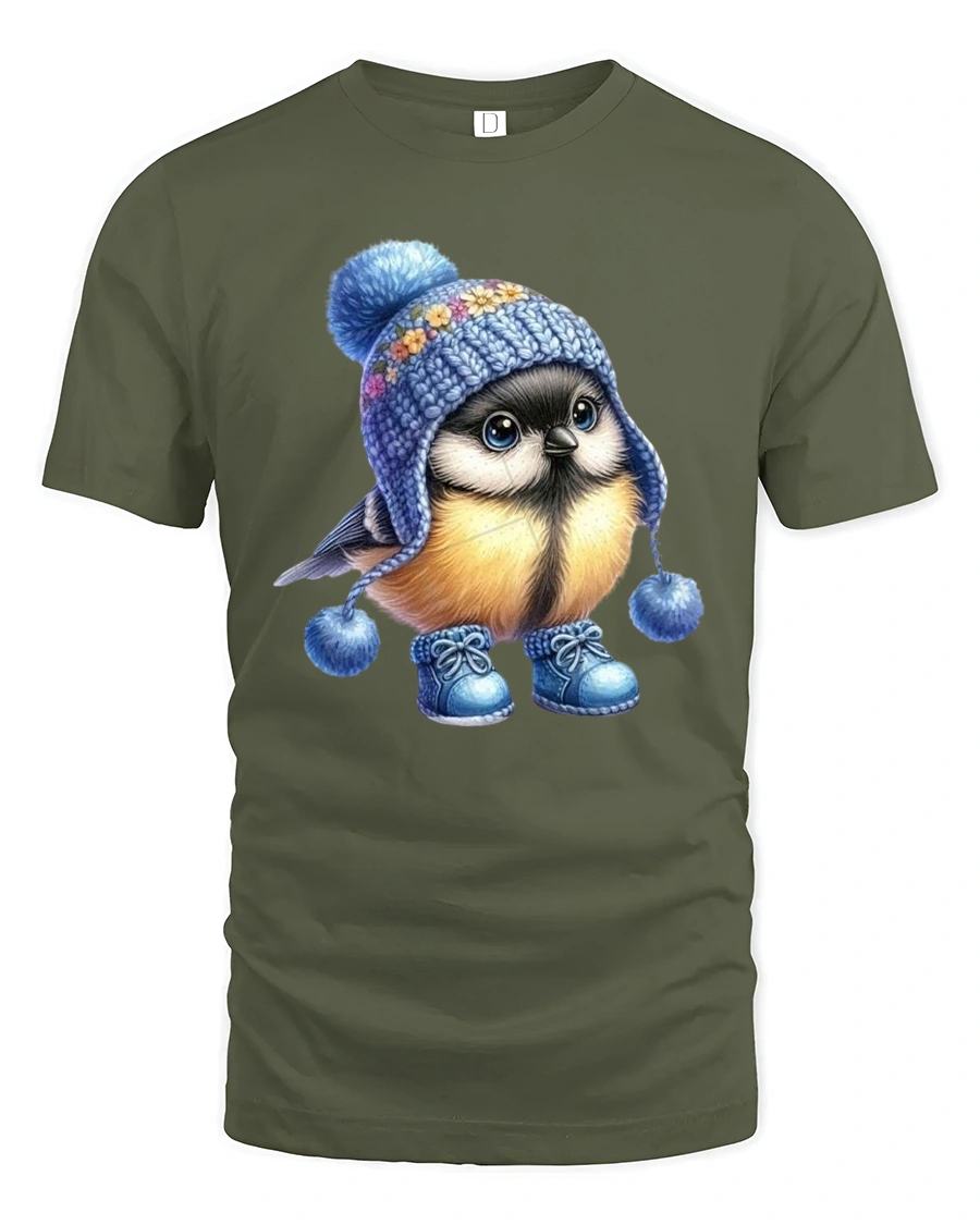 Cute Winter Bird Tee With Cozy Knit Hat Wholesome Art Style brings instant warmth and joy to any outfit.