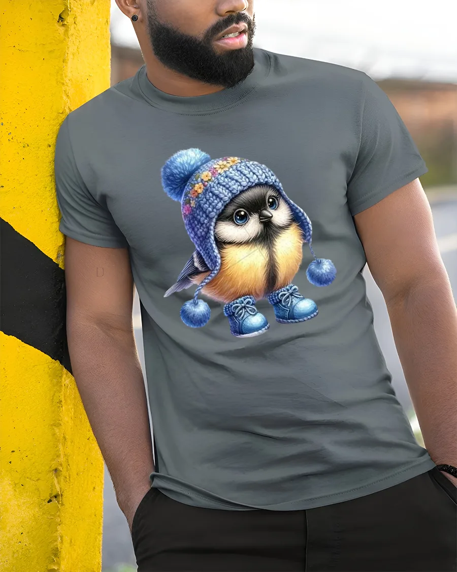 The Cute Winter Bird Tee With Cozy Knit Hat Wholesome Art Style is perfect for casual days when you want something lighthearted and charming.