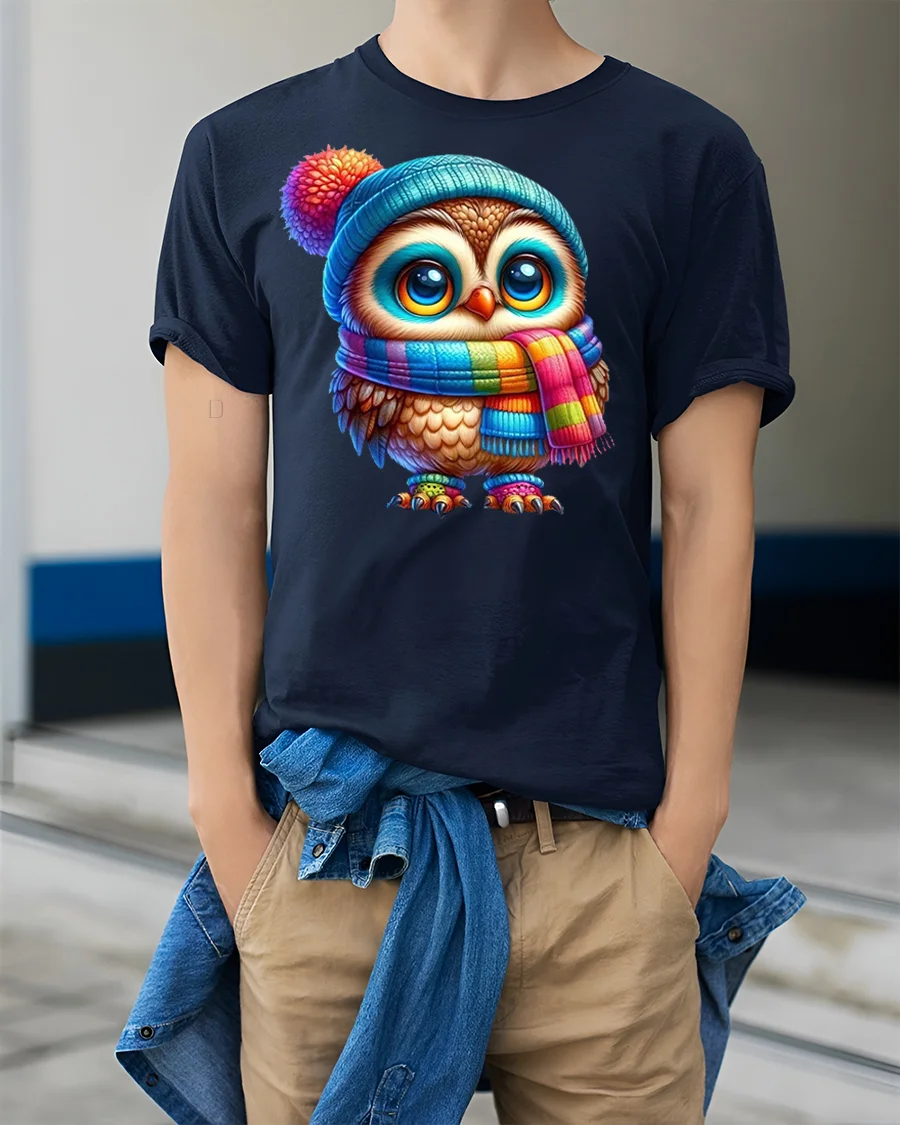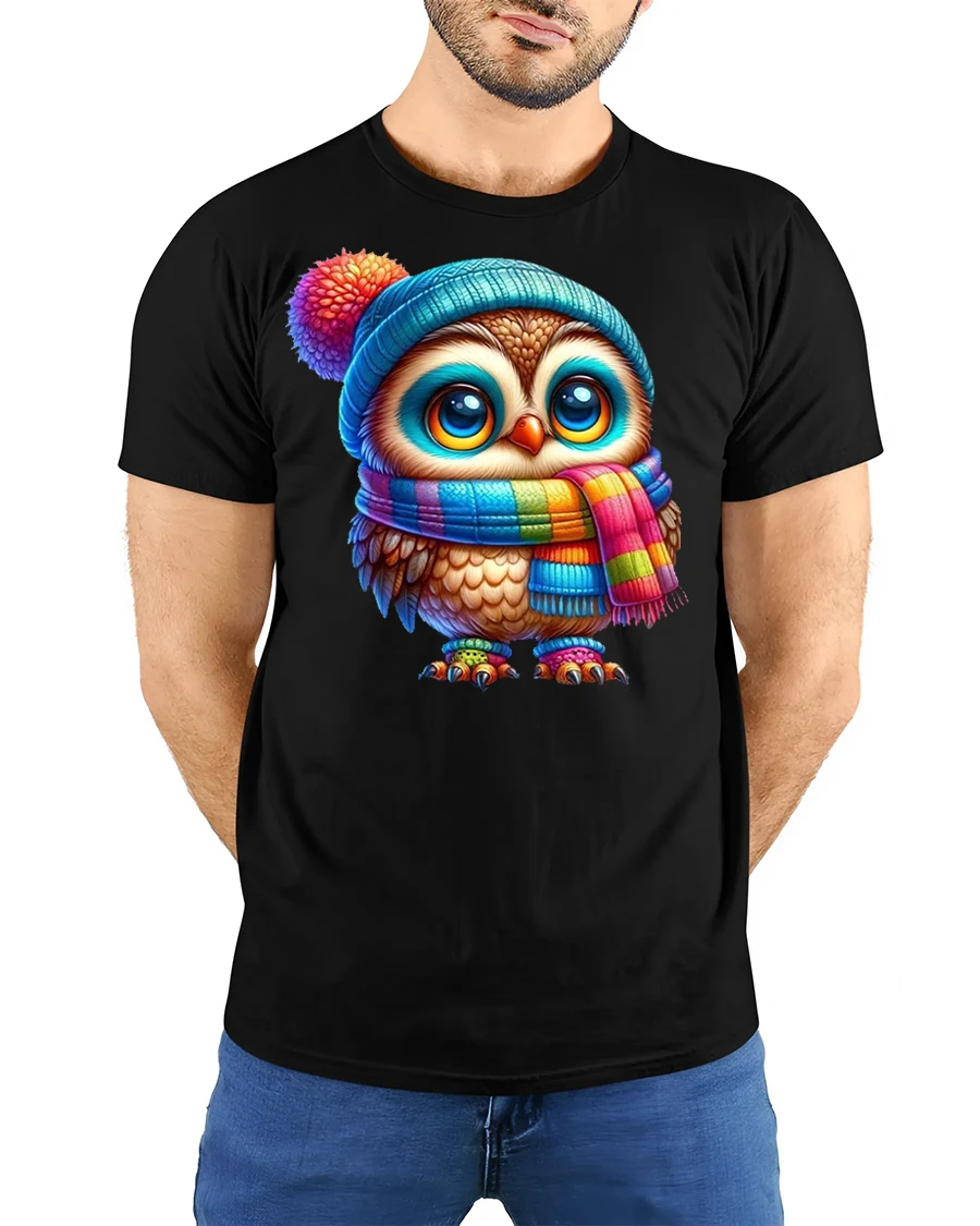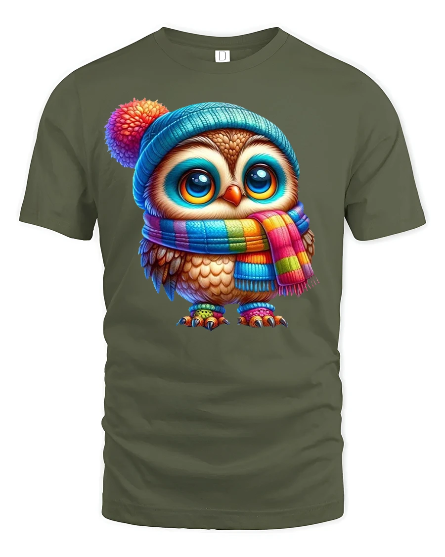 Bring color and coziness to your day with this cute winter owl t-shirt — where adorable meets stylish warmth!