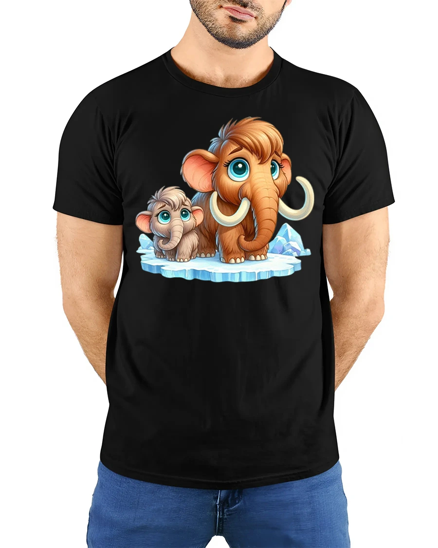 Made from comfortable breathable fabric, this tshirt delivers lasting softness while showcasing vibrant high quality artwork. The sweet mammoth duo adds personality and imagination to everyday outfits, making it a standout piece in any casual collection. Whether you love cute animal illustrations or playful prehistoric themes, this mammoth tshirt brings charm, creativity, and feel good style to your wardrobe.