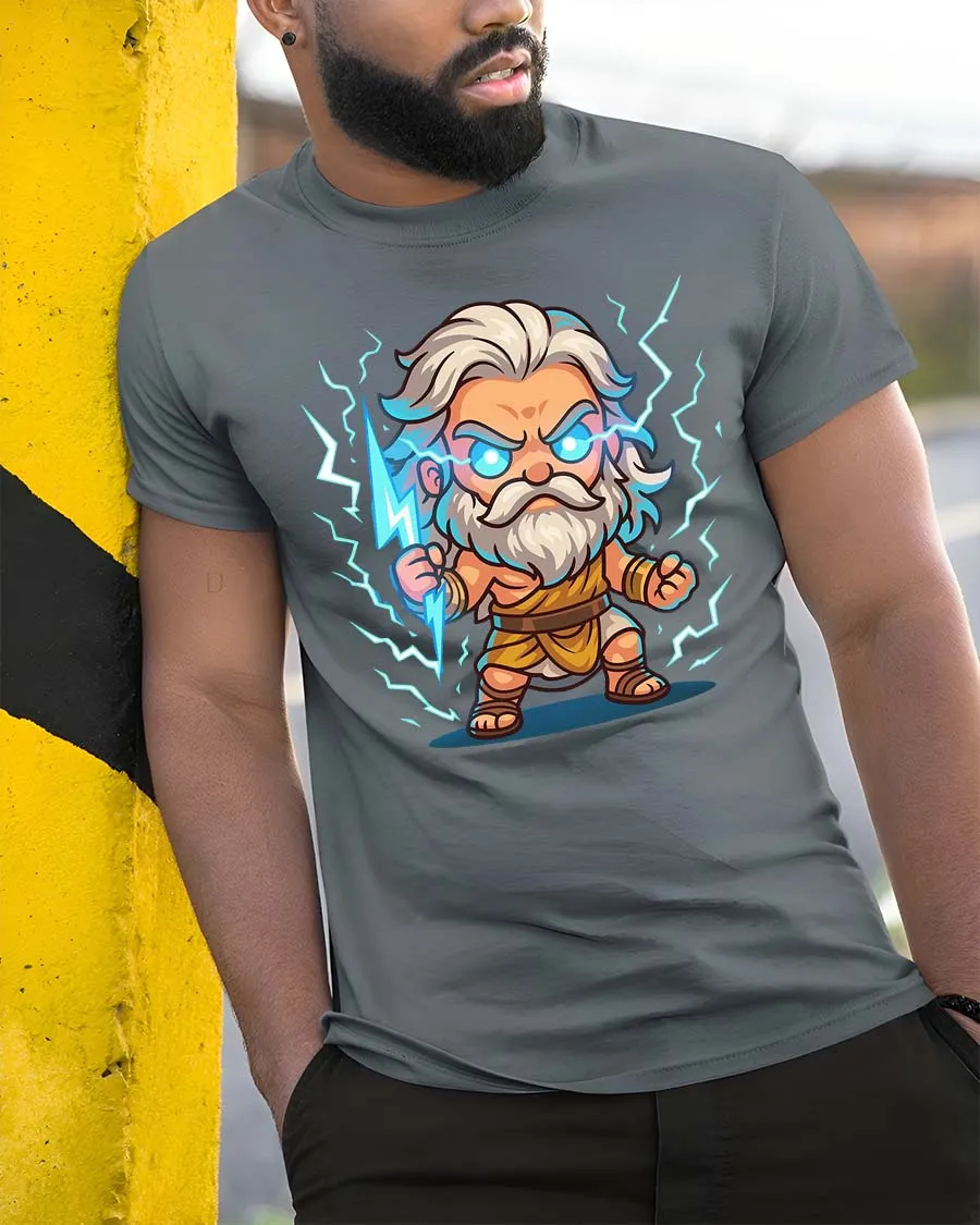 Cute Zeus Lightning T-Shirt Greek God Cartoon Thunder Tee features a fun and powerful cartoon version of the legendary Greek god Zeus.