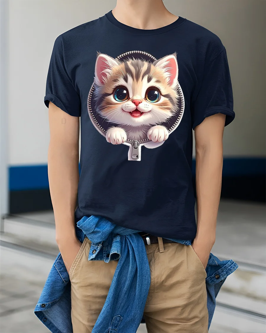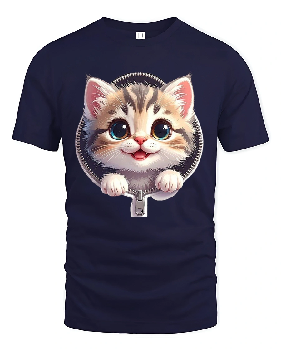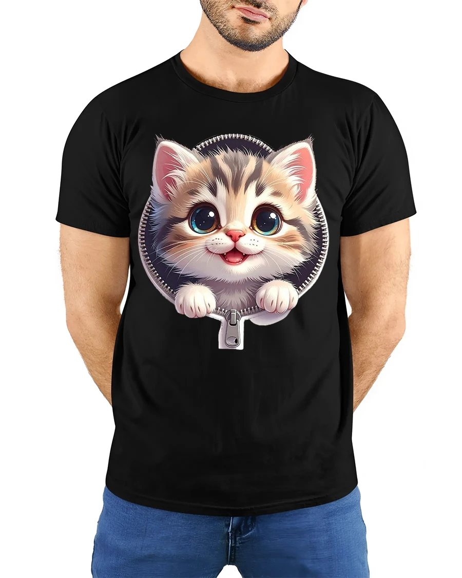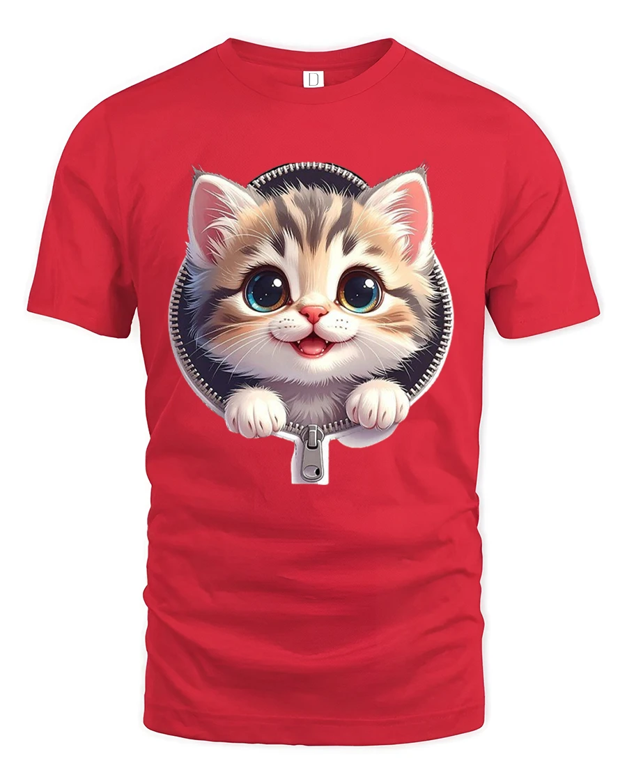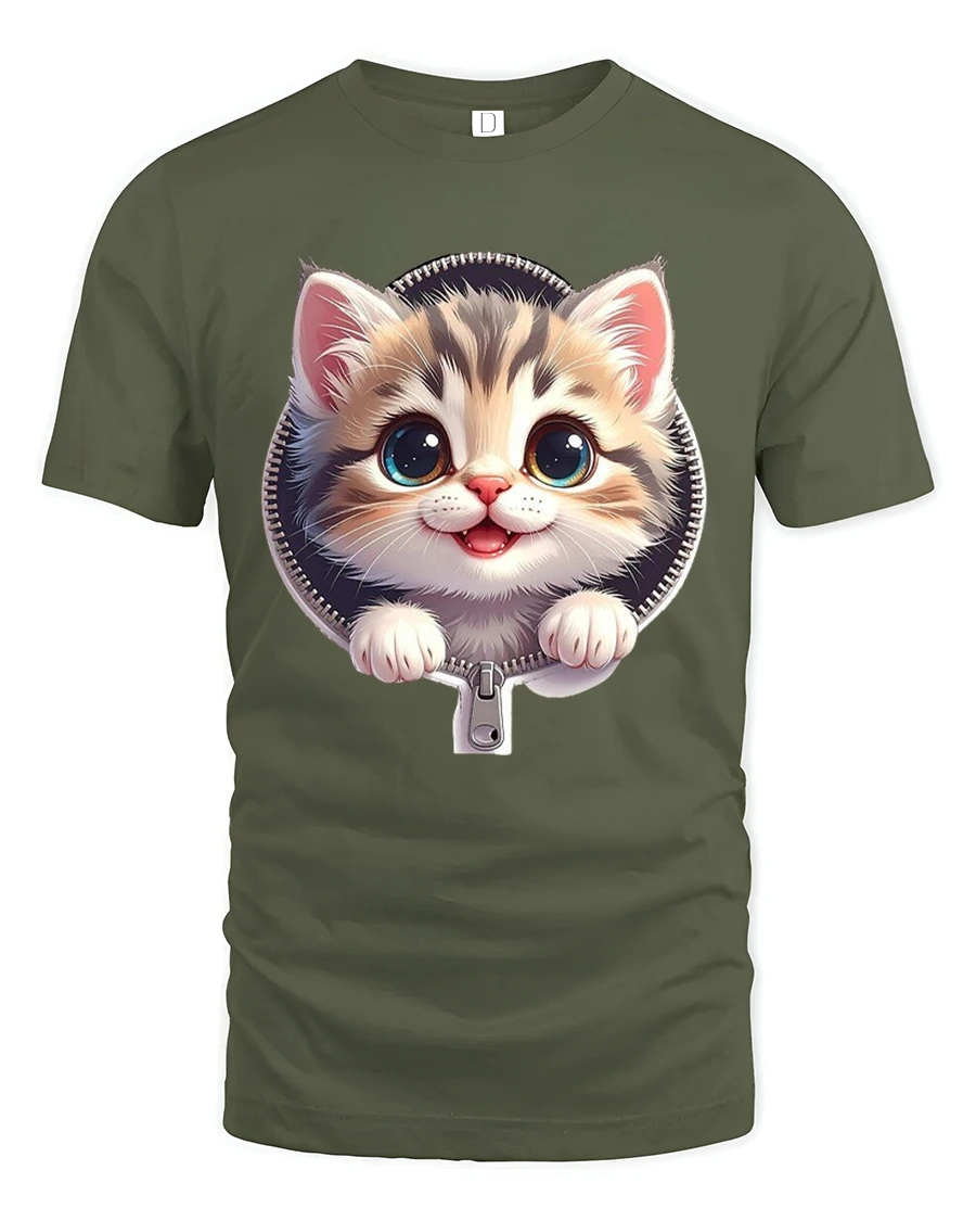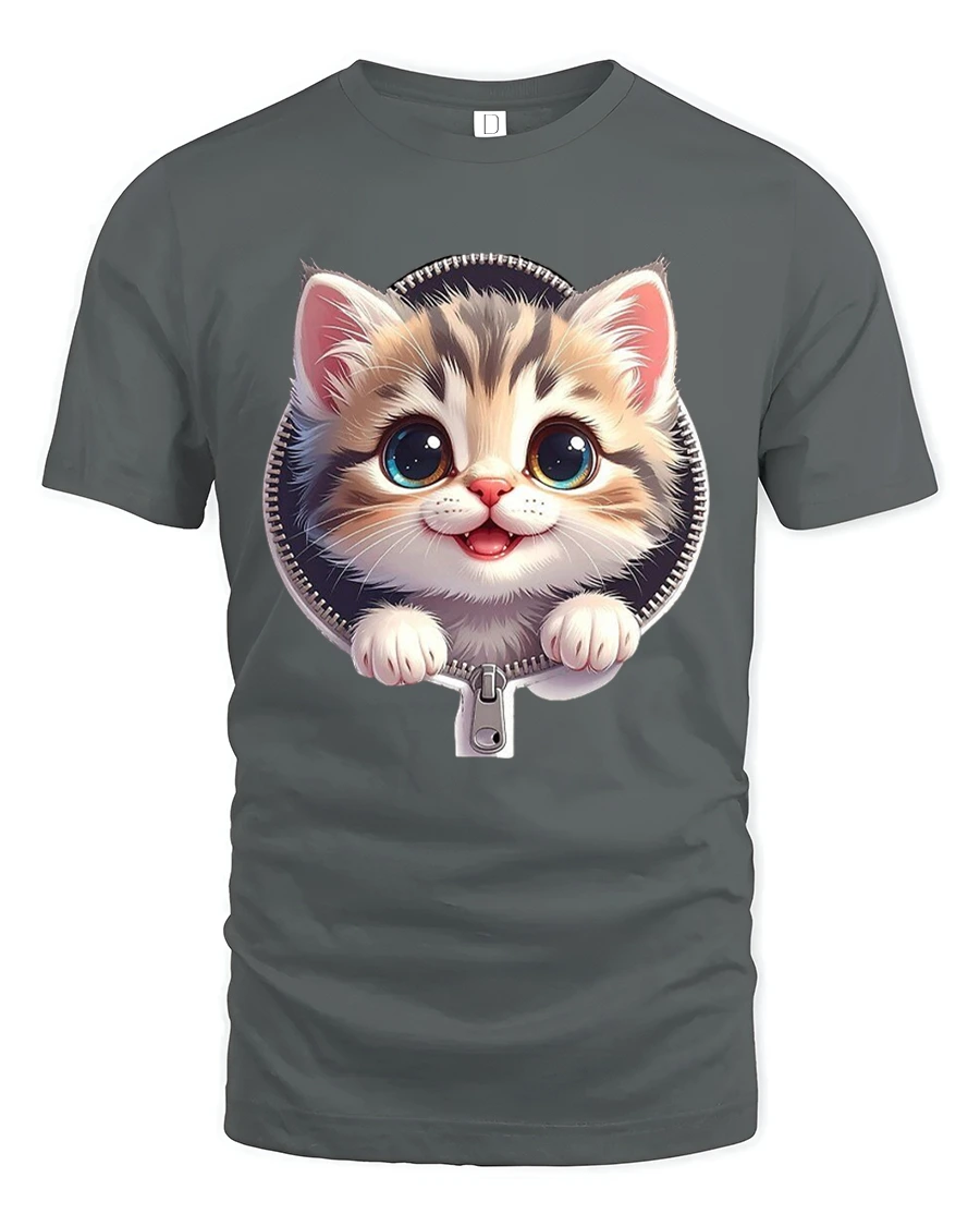 The Cute Zipper Kitten Graphic Tee With Big Eyes And Playful Smile brings instant joy with its charming and heartwarming design.