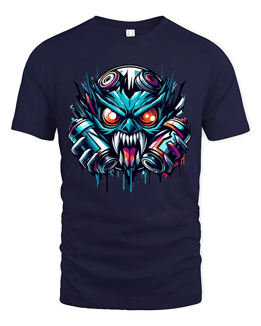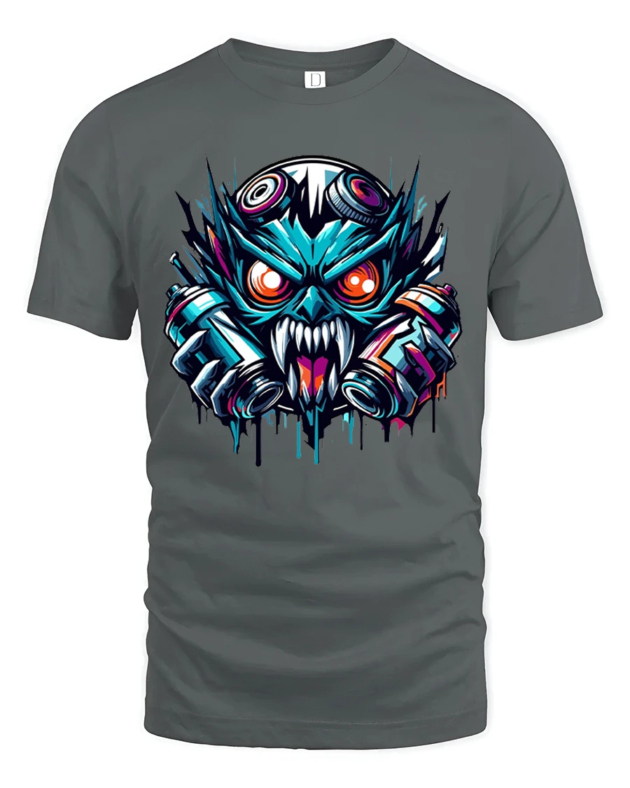 Cyberpunk Monster Graffiti Street Art Graphic Tee Shirt brings intense futuristic energy inspired by urban street culture and digital art.
