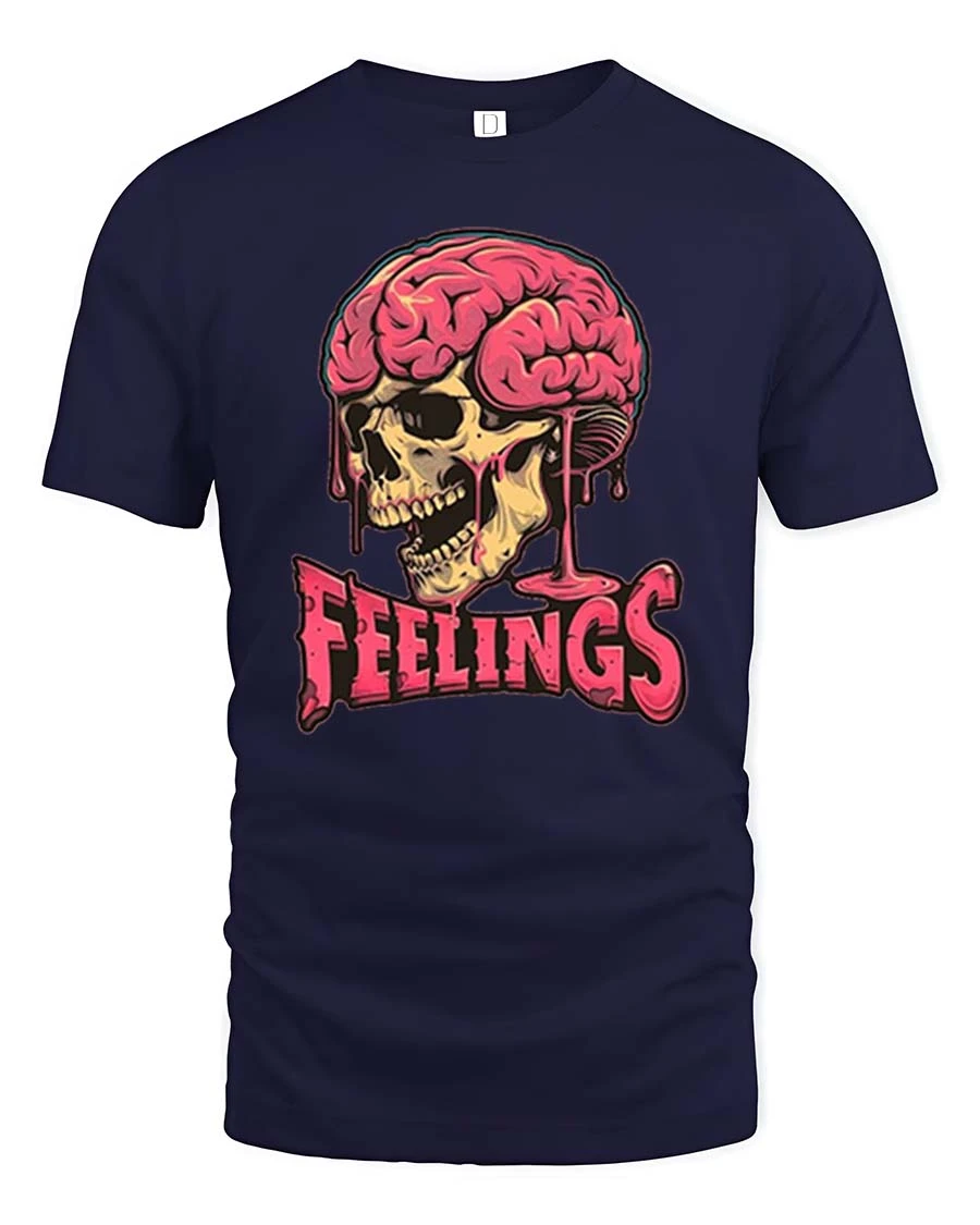 Dark Humor Feelings Skull Brain Drip Graphic T-Shirt Style combines bold artistic expression with edgy visual storytelling.