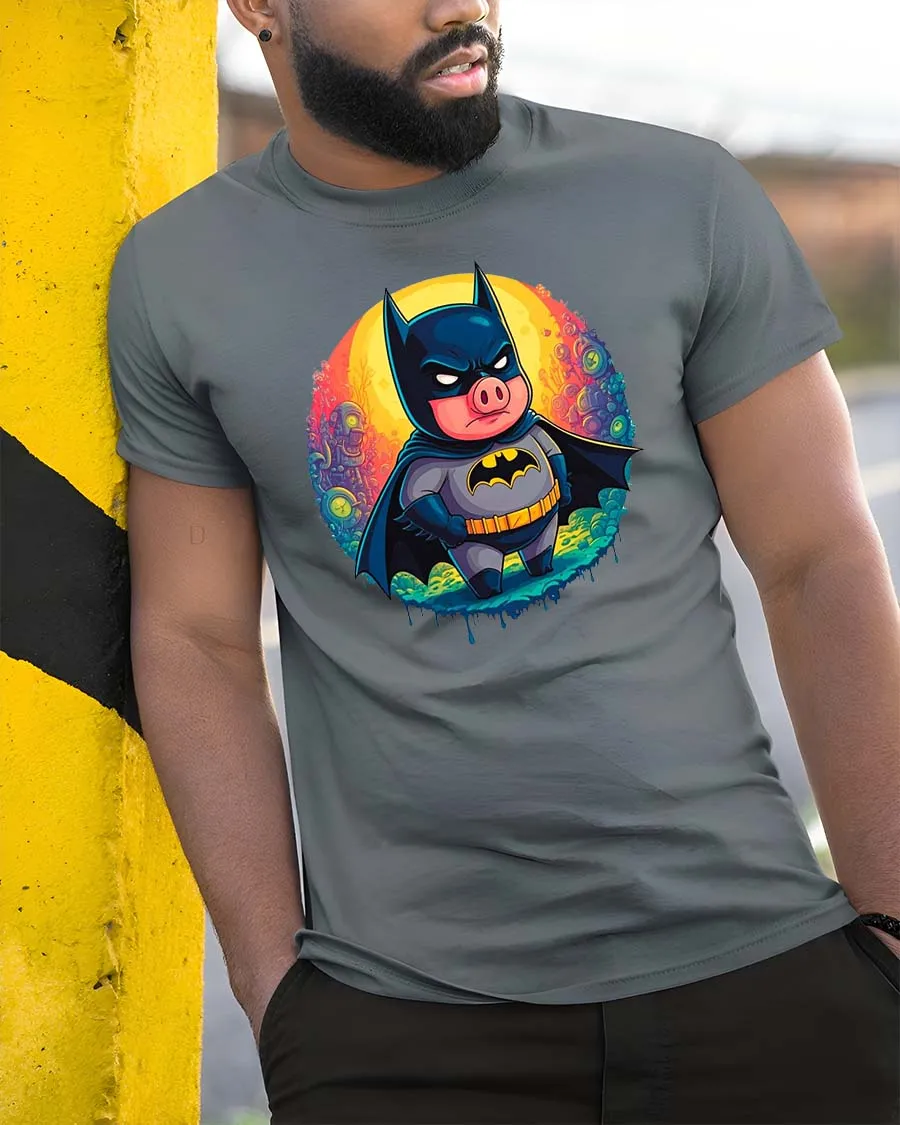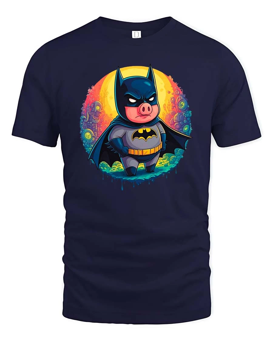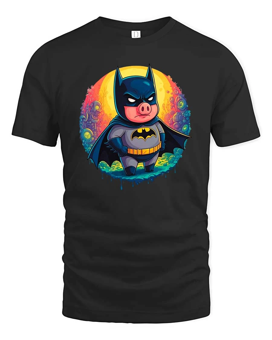 This dark knight pig t-shirt is a great gift for comic fans, animal lovers, and anyone who enjoys playful parody apparel.