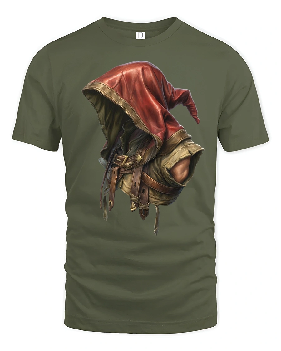 Dark Rogue Hooded Warrior Tee with Epic Fantasy Art Design blends mystery, strength, and artistic detail into a visually powerful piece of wearable art. This striking design features a hooded rogue figure adorned with rugged leather straps, layered armor, and a dramatic cloak that captures the essence of fantasy adventure. Every detail is rendered with depth and realism, creating a bold and captivating centerpiece on a comfortable everyday tee.