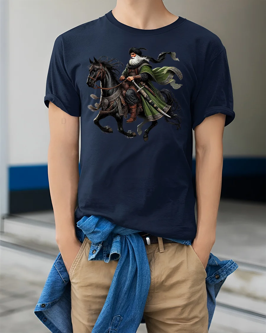 Ride into legend with the Desert Knight Warrior Epic Horse Rider Graphic Tee, a bold tribute to bravery, adventure, and timeless style. This powerful design showcases a noble warrior riding a majestic black horse, wrapped in flowing robes and armed for battle. Made from premium soft cotton, this t-shirt offers unbeatable comfort and a stunning, high-detail print.