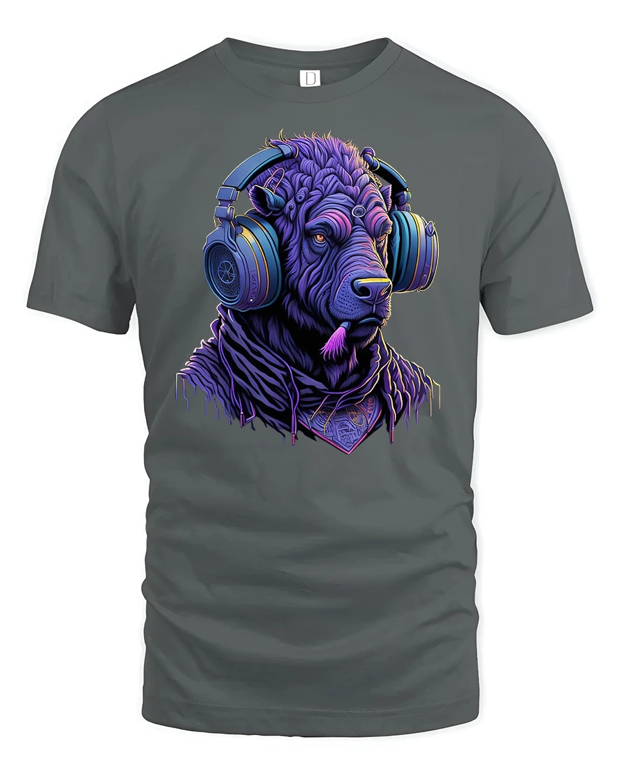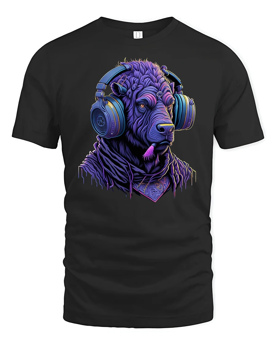 DJ Beast Vibes Neon Headphones Graphic T-Shirt is the ultimate choice for music lovers, party-goers, and festival fans who want to wear their beats in style. Featuring a striking bear in vivid purple and blue tones, rocking oversized headphones, this design bursts with energy and personality.