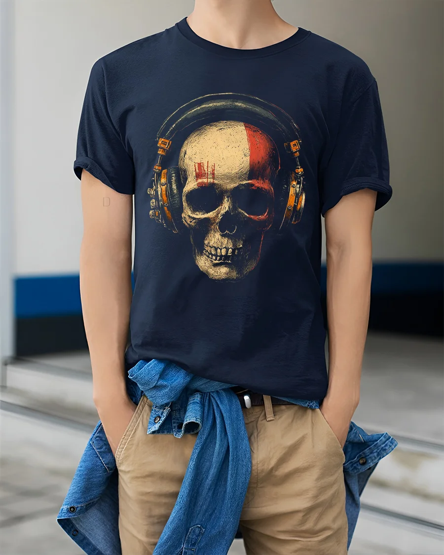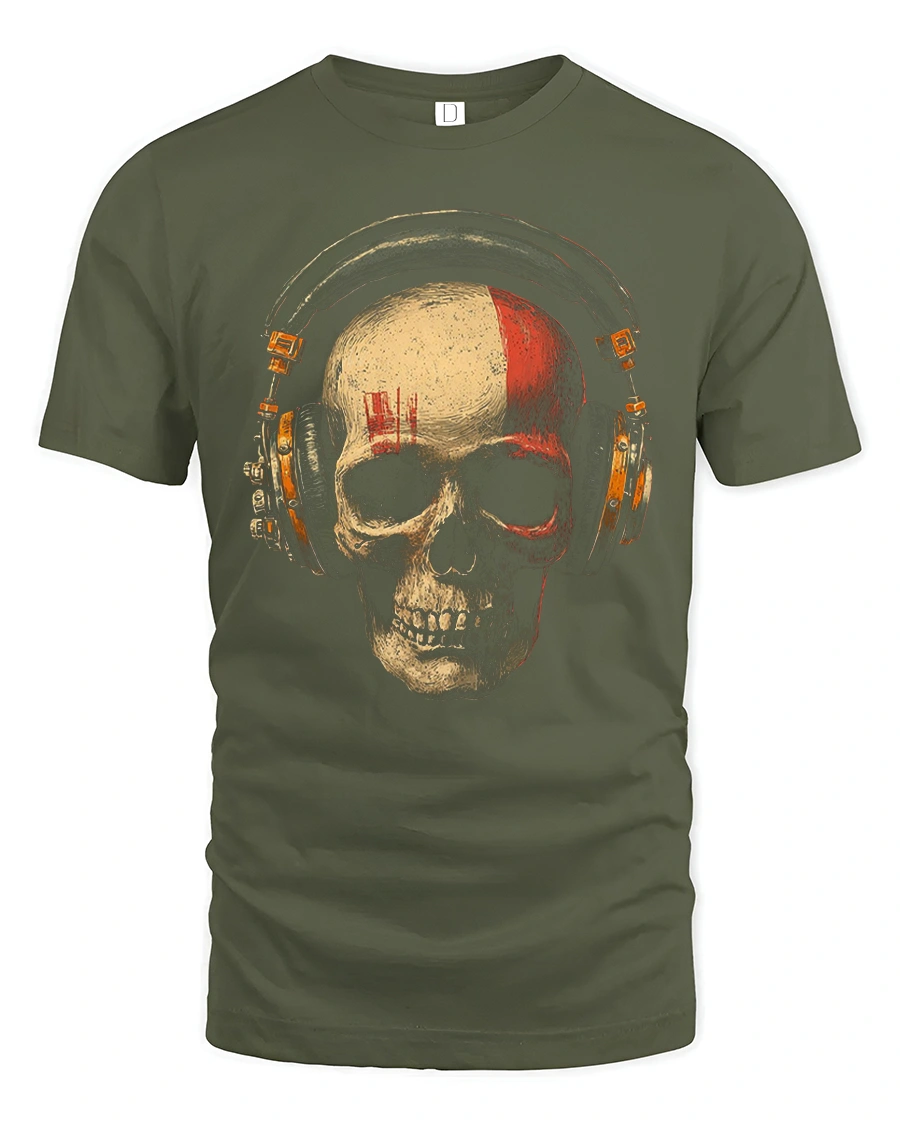 This DJ Skull Headphones Tee Vintage Rock Music Graphic Style delivers a bold and energetic look inspired by classic rock aesthetics and gritty grunge art. The distressed skull design paired with oversized vintage headphones creates a striking visual that instantly appeals to music lovers who enjoy powerful and expressive artwork. The bold red accent on the skull adds depth and attitude, giving the tee an eye-catching edge that stands out from ordinary designs.