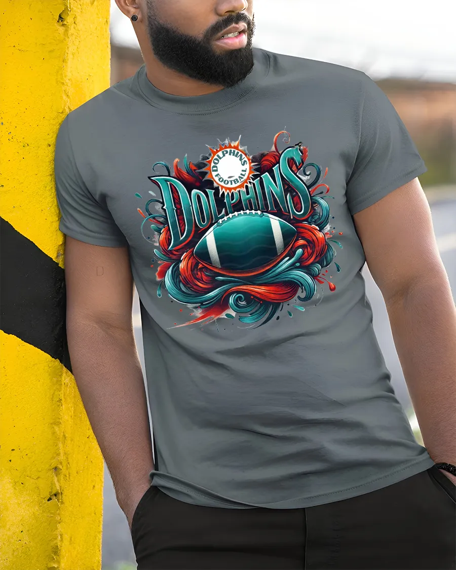 Featuring a dynamic artistic football surrounded by ocean-inspired waves, this tee captures the power, pride, and passion of every Dolphins supporter.