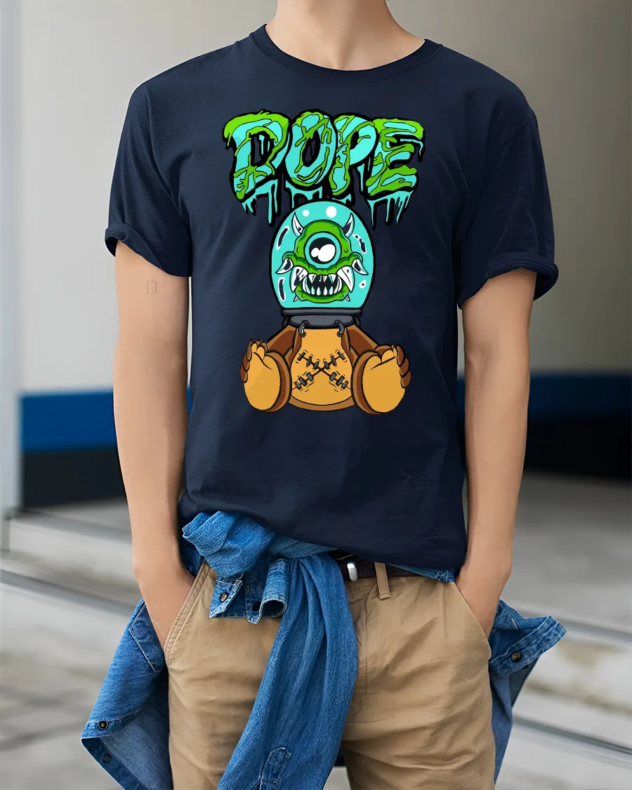 Dope Monster Teddy Bear Graphic Streetwear T-shirt is the perfect blend of edgy streetwear and playful creativity. Featuring a stitched teddy bear body with a wild cyclops monster head and bold “Dope” lettering, this tee makes a loud and stylish statement that’s impossible to ignore.