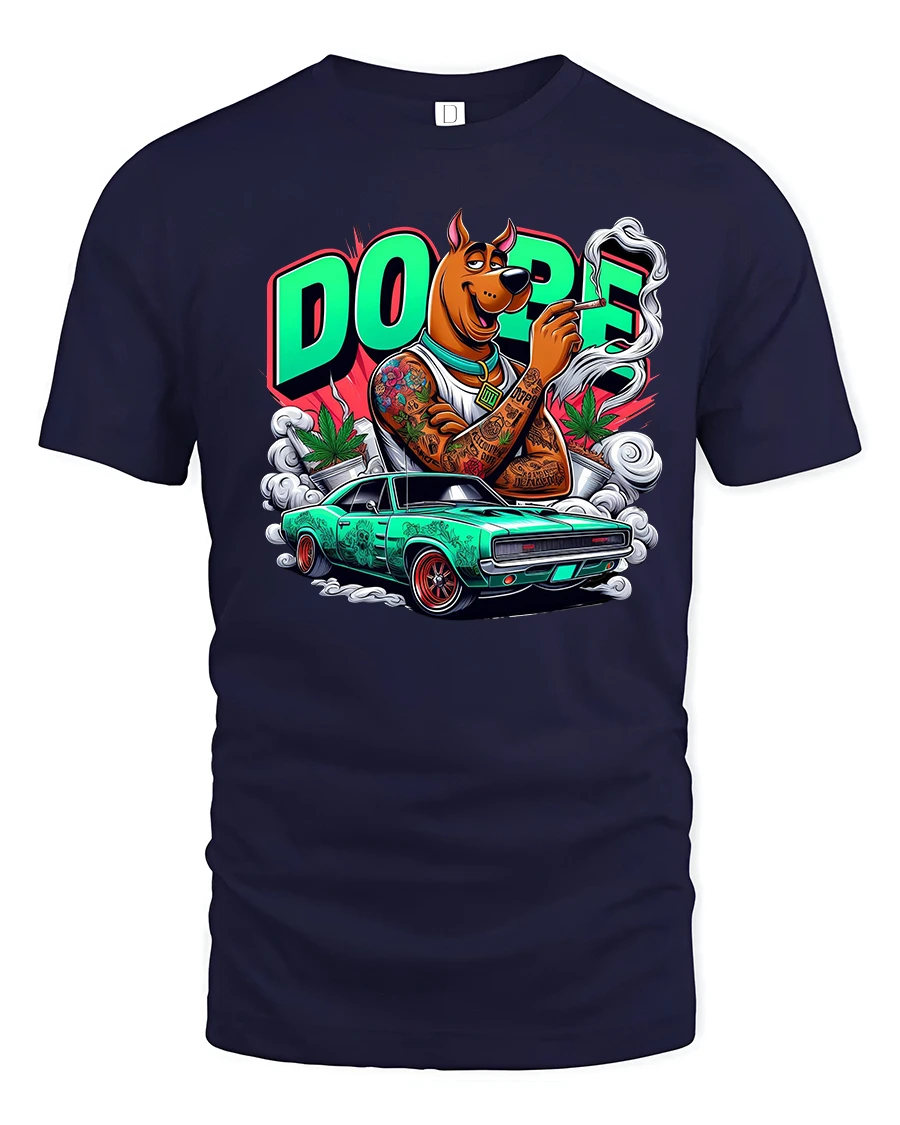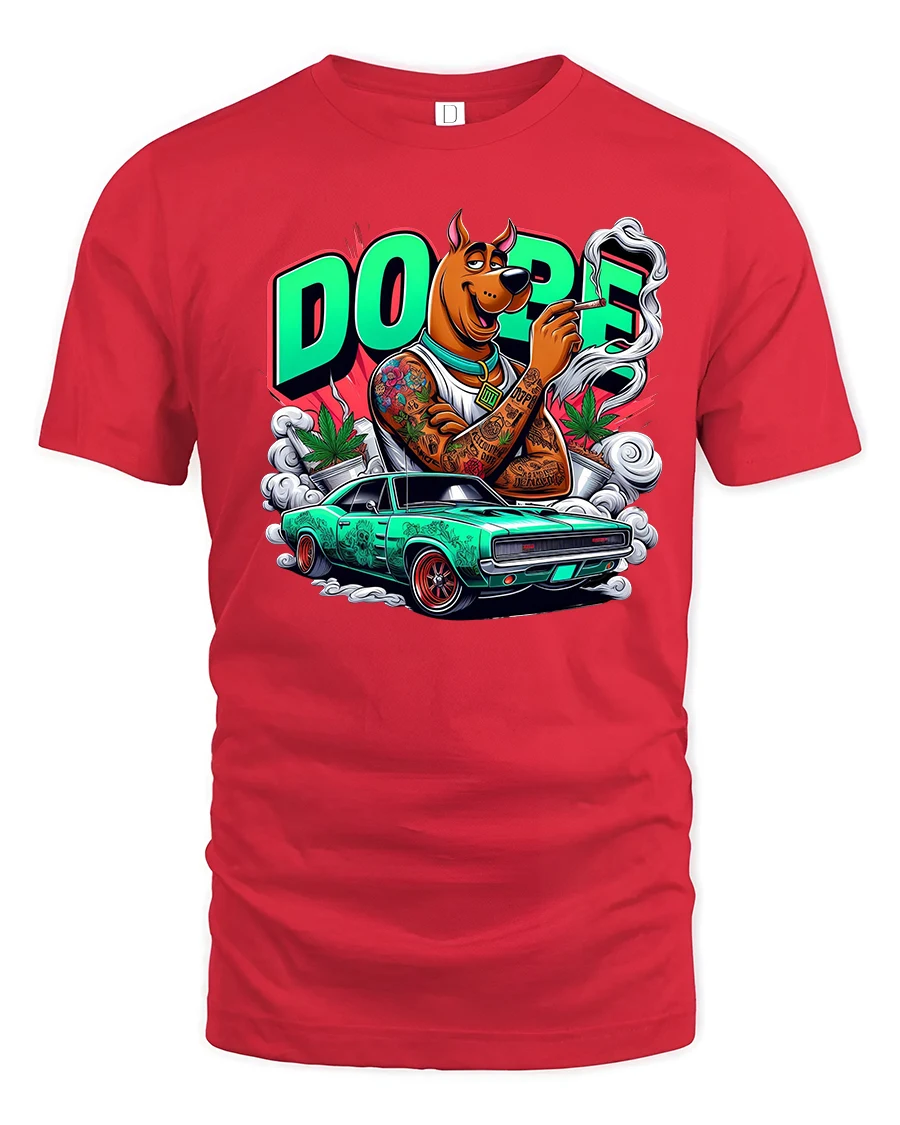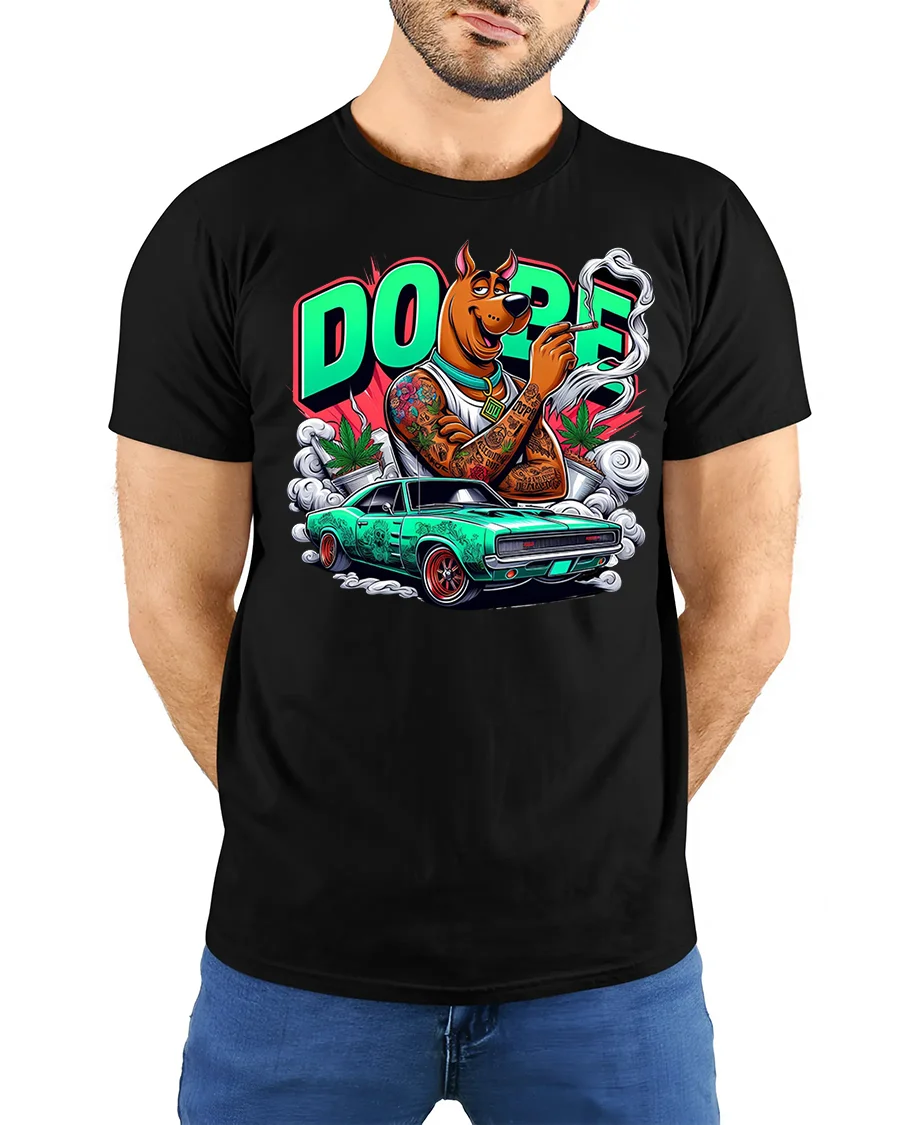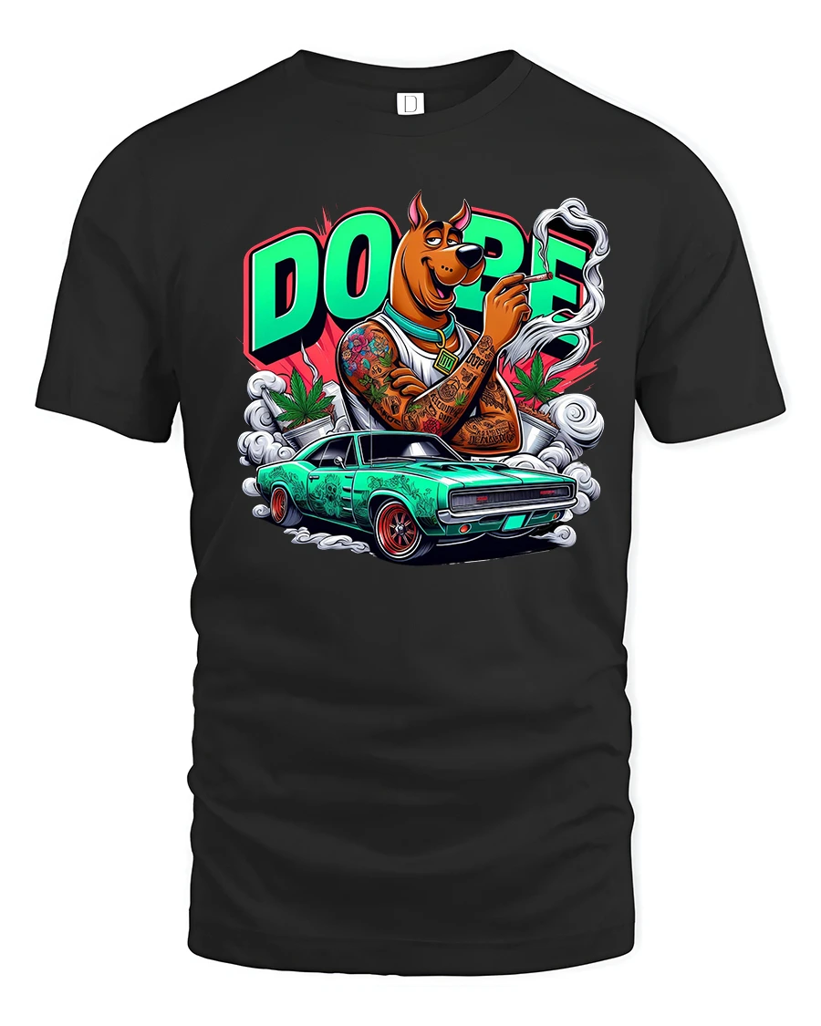 This Dope Street Dog Muscle Car Graphic T Shirt Urban Cartoon Style brings attitude and originality to any wardrobe.