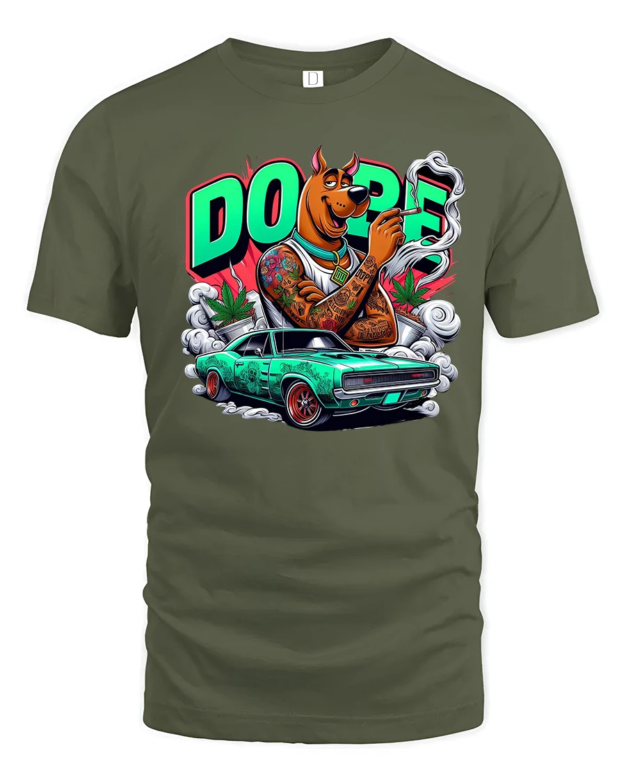 The Dope Street Dog Muscle Car Graphic T Shirt Urban Cartoon Style delivers bold street energy with a playful attitude.