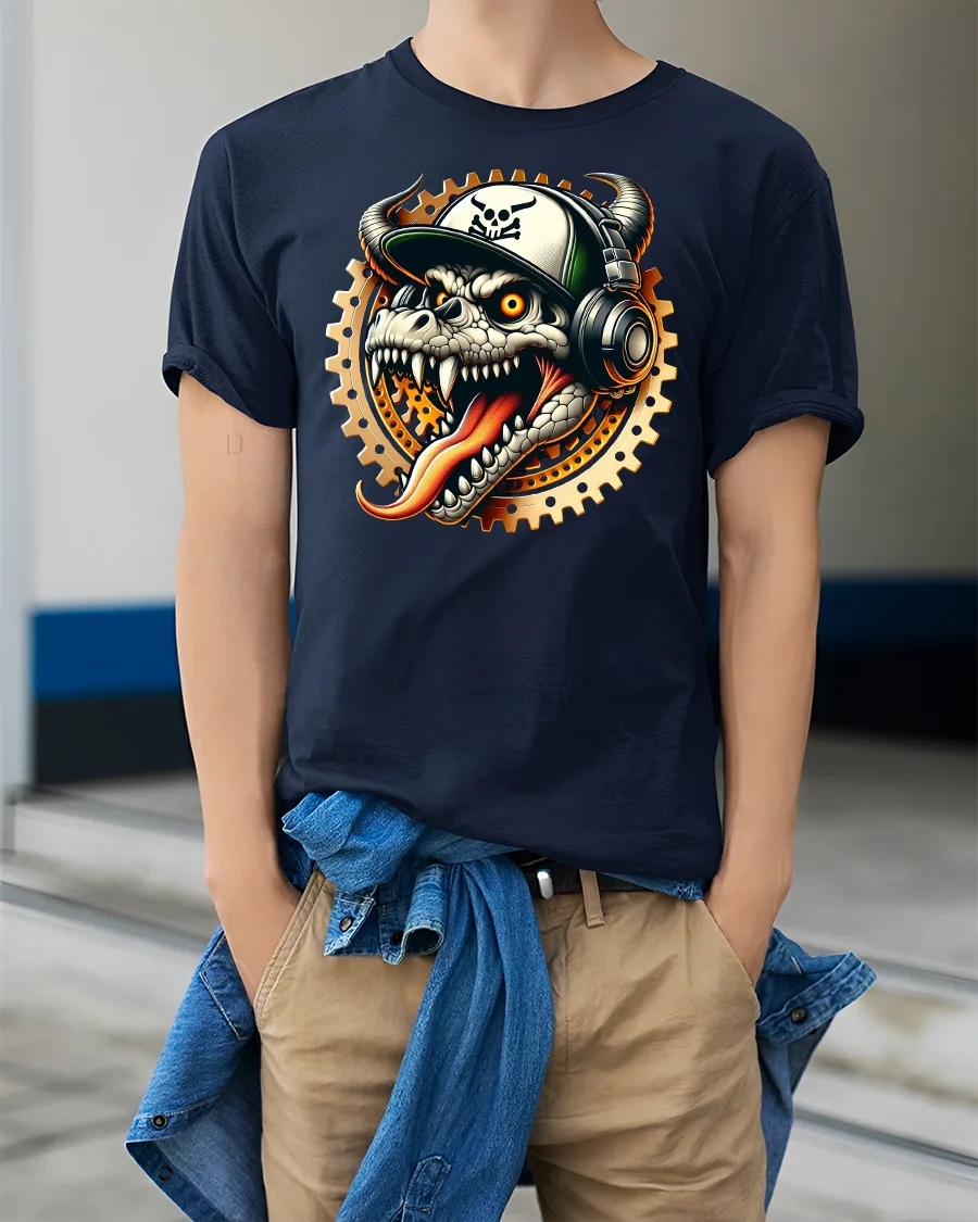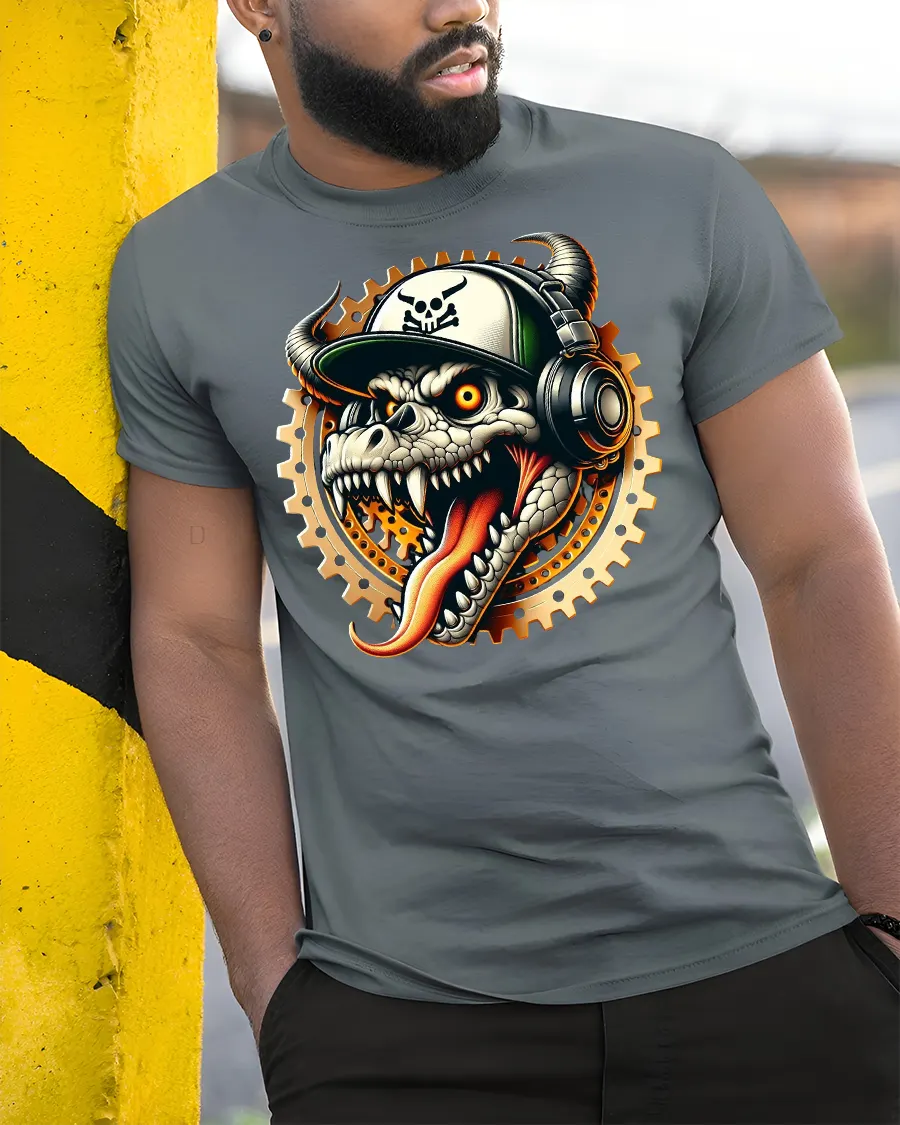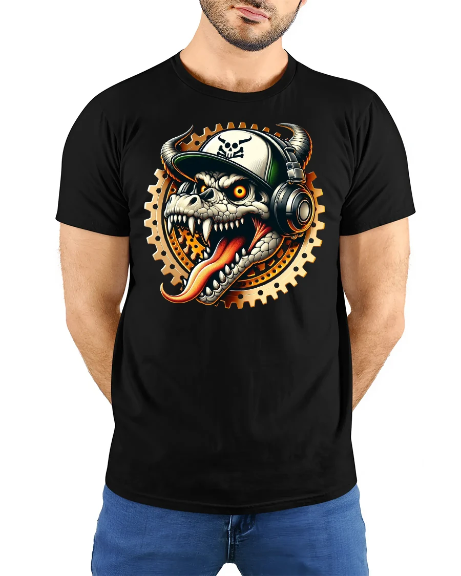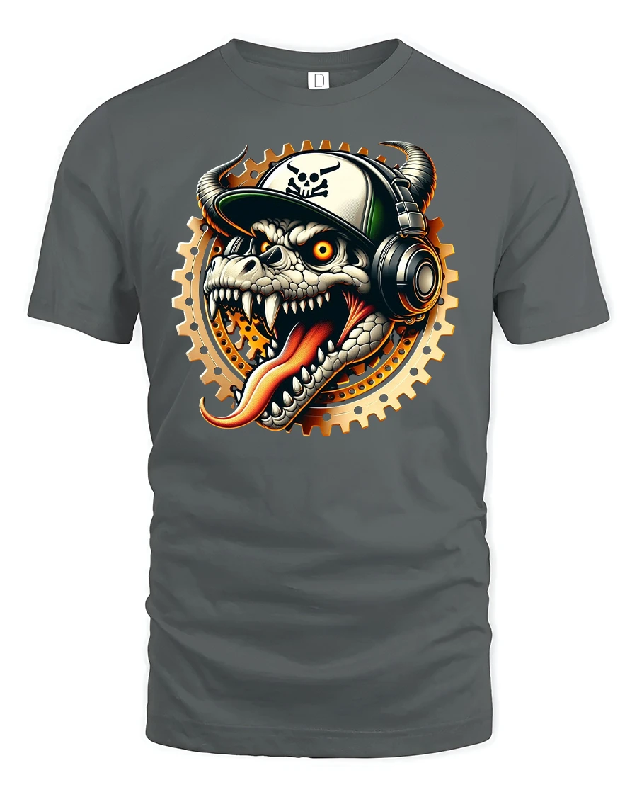 Dragon Skull DJ Style T-Shirt is designed for those who want bold fashion that makes a statement. Featuring a fierce dragon skull with horns, a cap, and headphones, this tee brings a mix of gothic energy and urban streetwear style. Its striking design is perfect for music lovers, gamers, or fans of edgy graphic art.