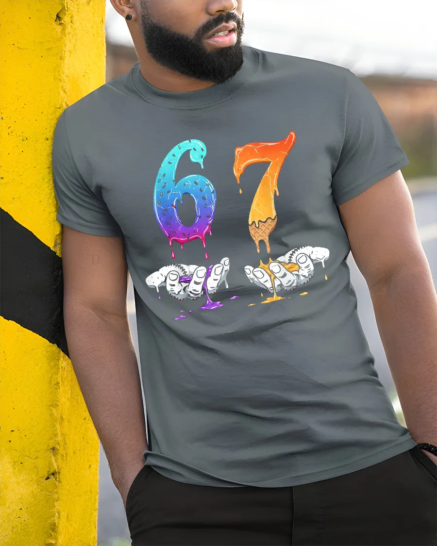 The Dripping 67 Number Art Graphic T Shirt delivers a bold visual impact through a creative blend of color motion and artistic expression.