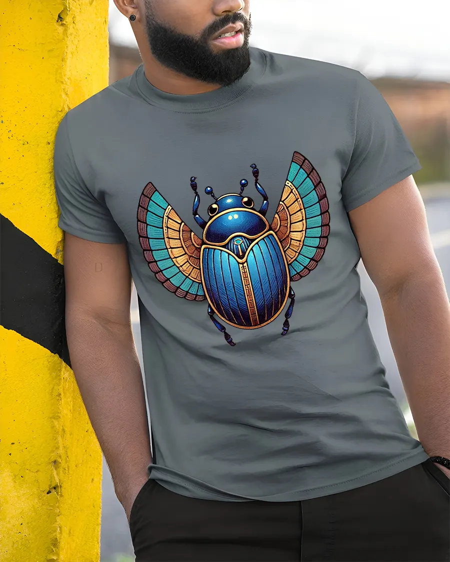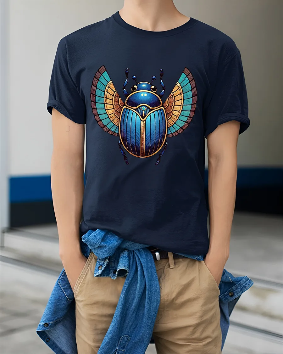 Made from soft breathable fabric, this t shirt delivers all day comfort with a smooth lightweight feel. The high quality print highlights every intricate line and vibrant shade, ensuring the scarab design remains sharp and eye catching. Ideal for lovers of history, mythology, and unique graphic fashion, this egyptian beetle tshirt adds cultural depth and bold personality to your everyday wardrobe while keeping your look modern and expressive.