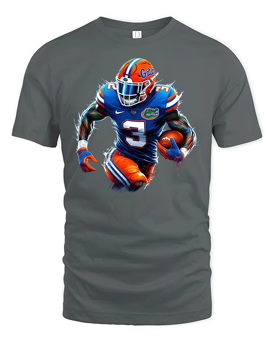Featuring a dynamic football player charging through lightning effects, this tee radiates intensity and team pride.